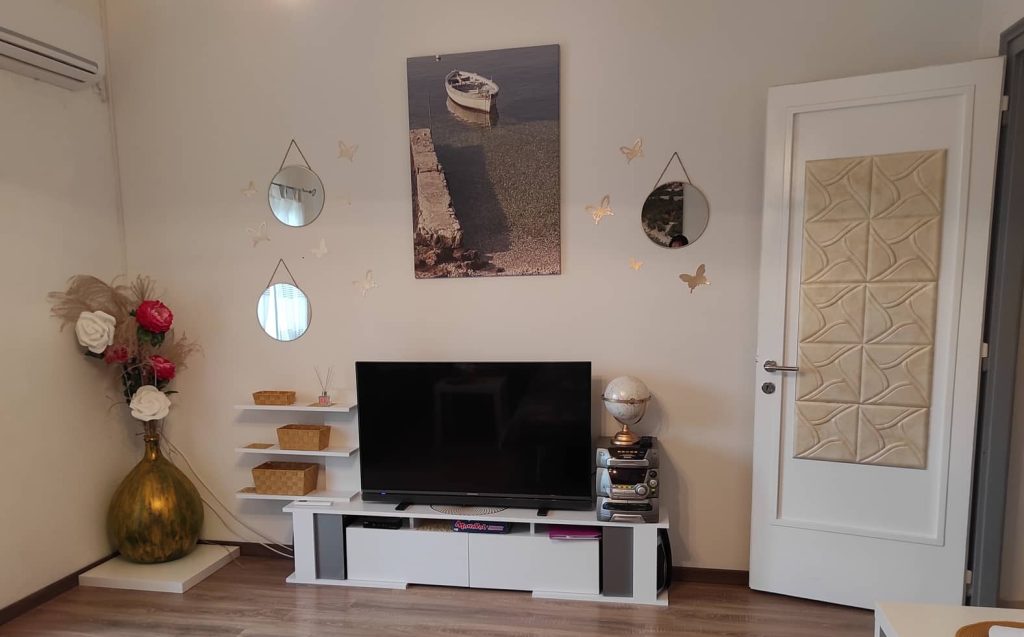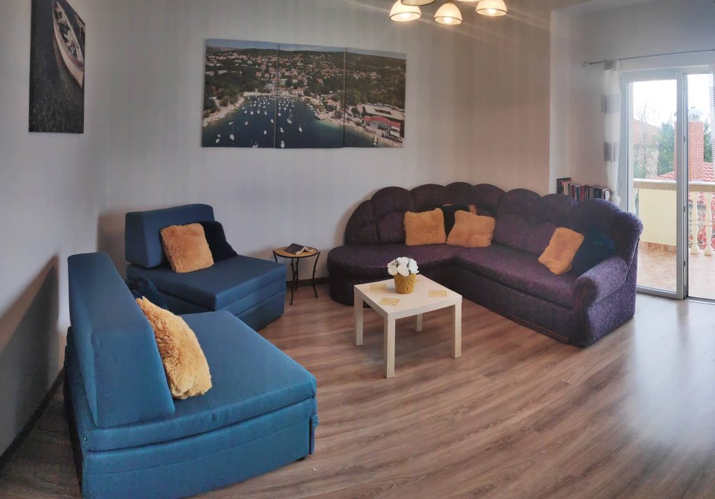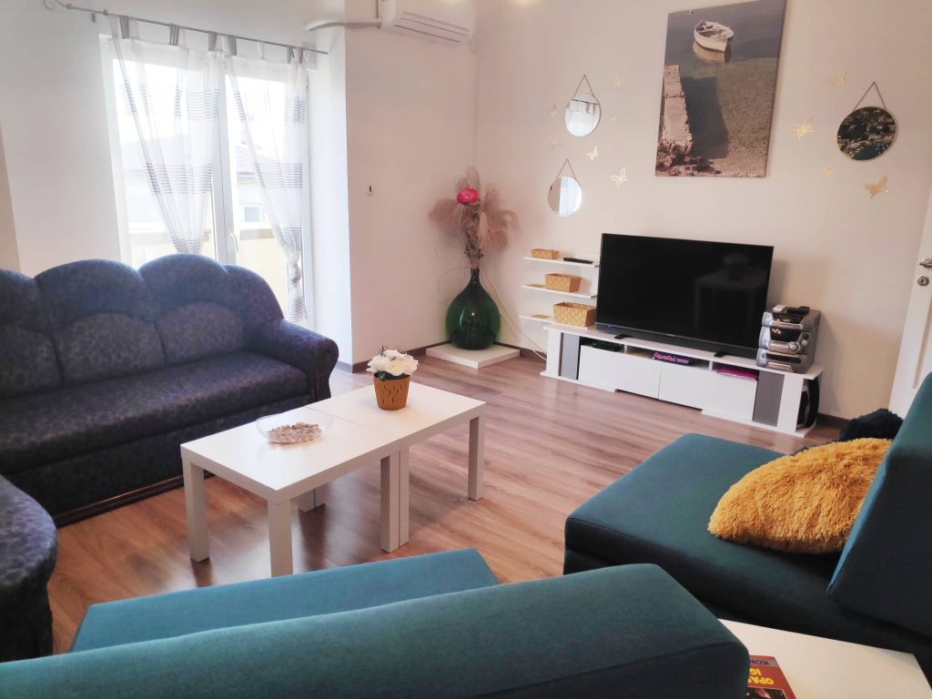 Zelo lepo urejen apartma v mirnem okolišu, apartma v celoti varno ograjen z igriščem za otroke in pasje prijatelje, opremljen tudi z pralnim in pomivalnim strojem.
