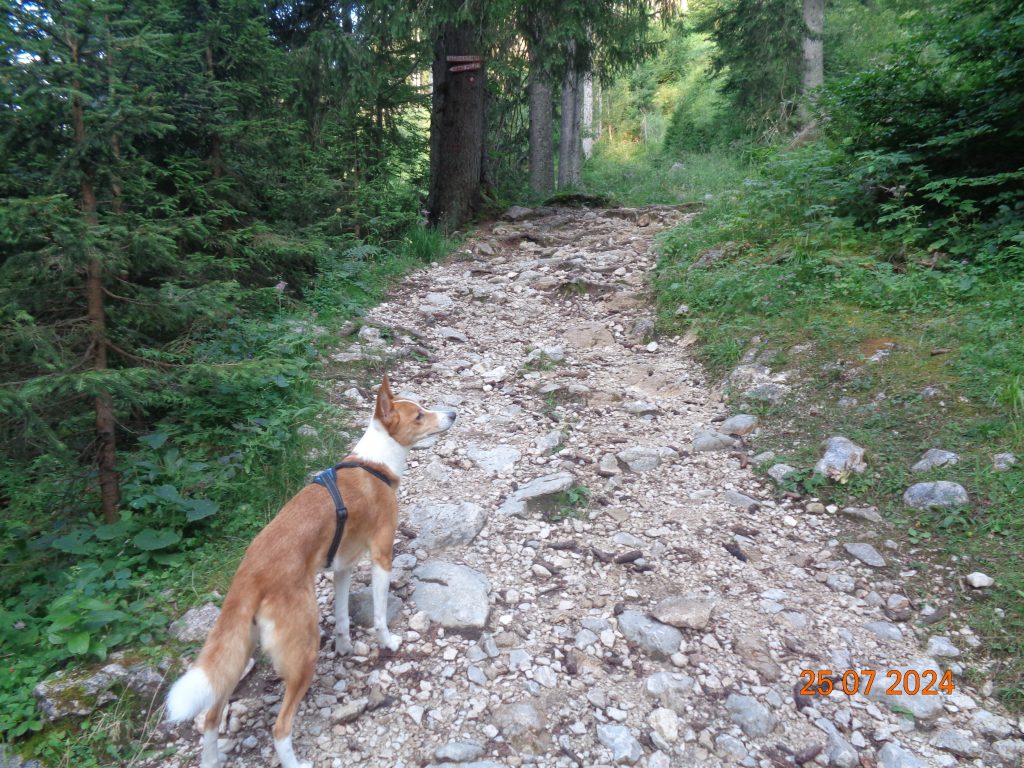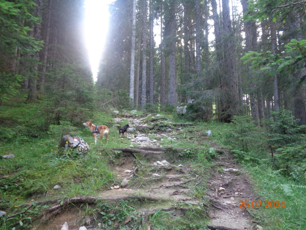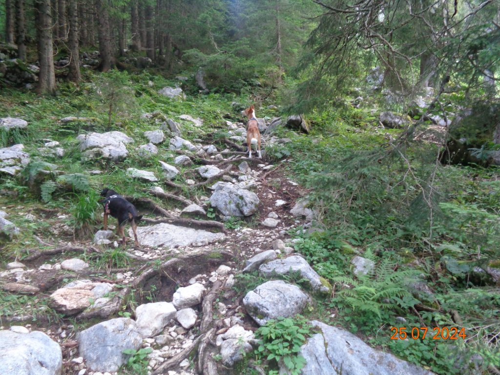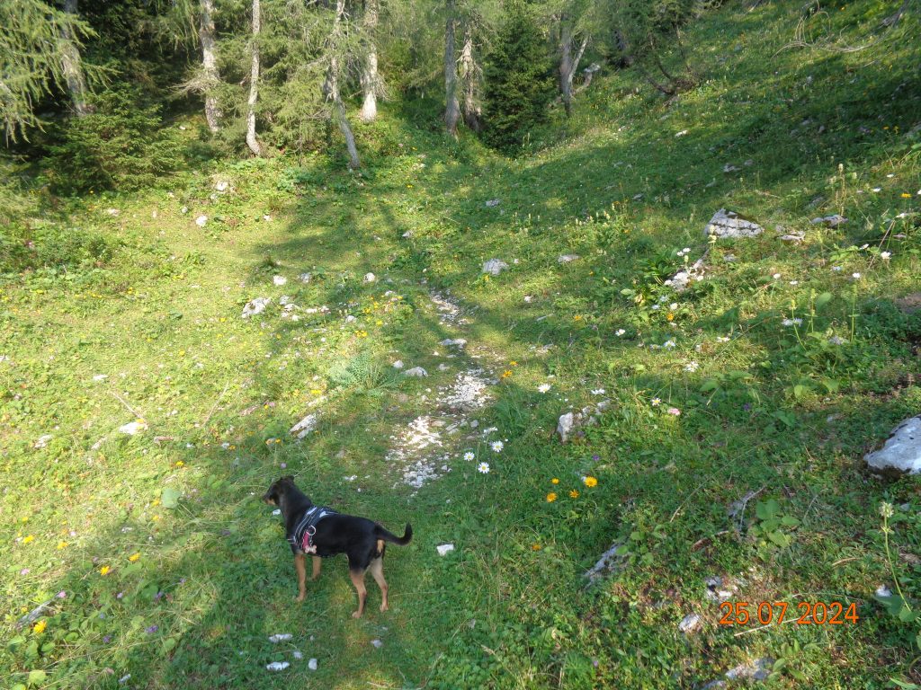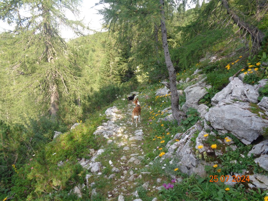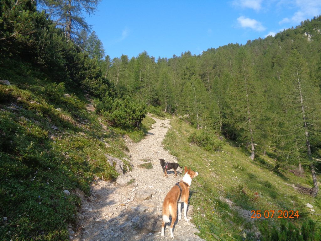 Nadaljevale smo rahlo desno. Prvi del poti je potekal po lahko sledljivi poti.