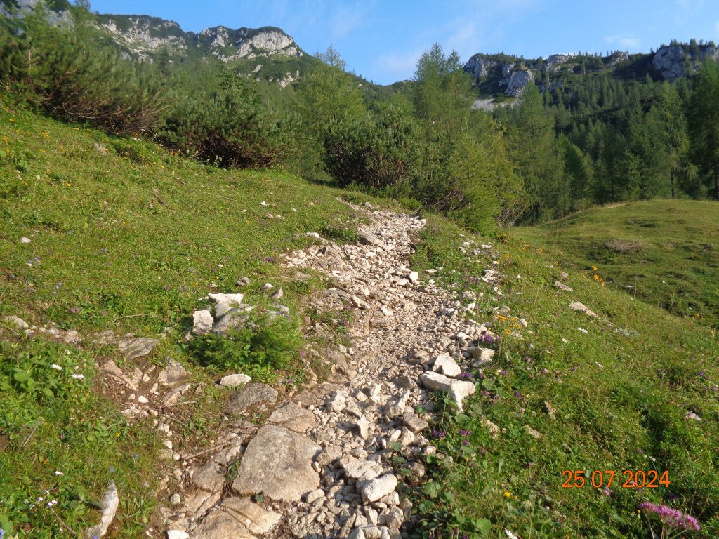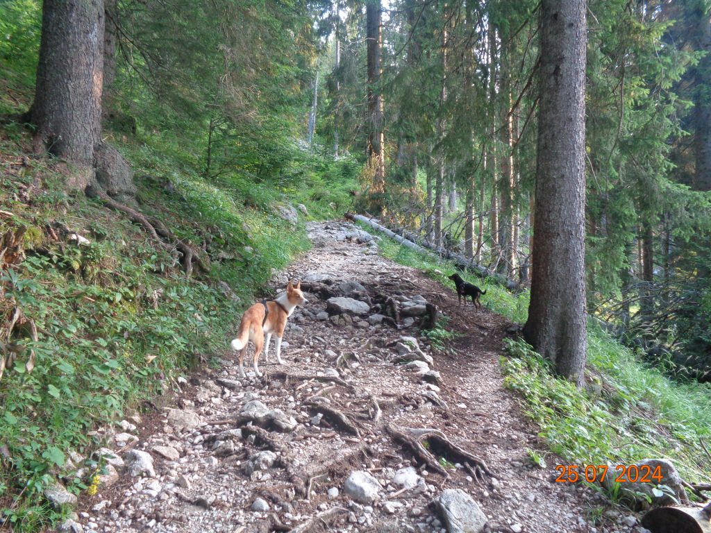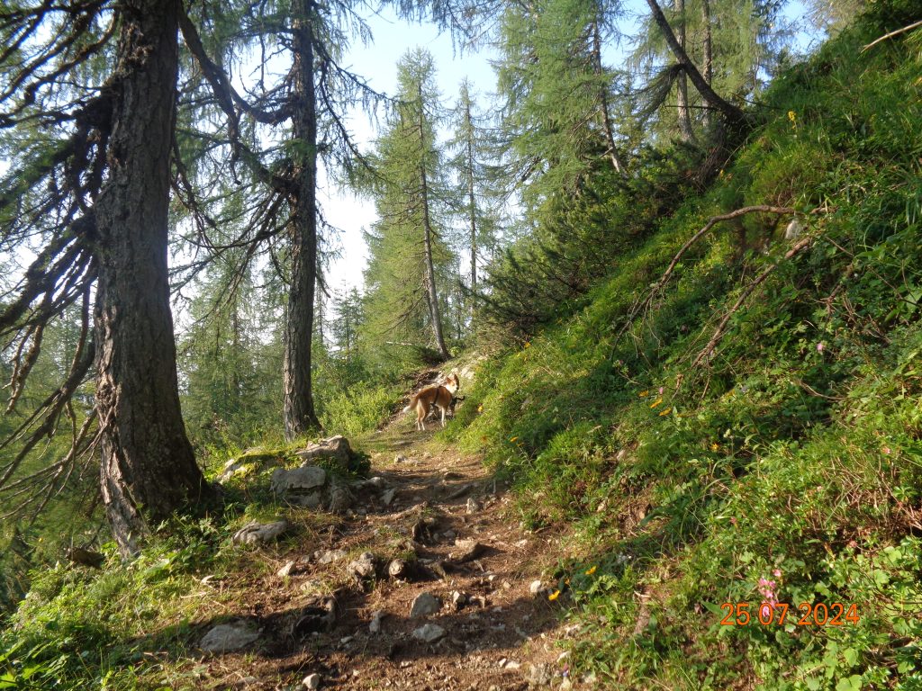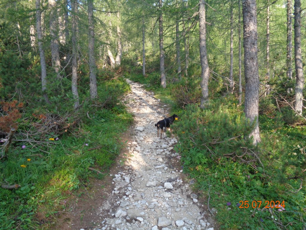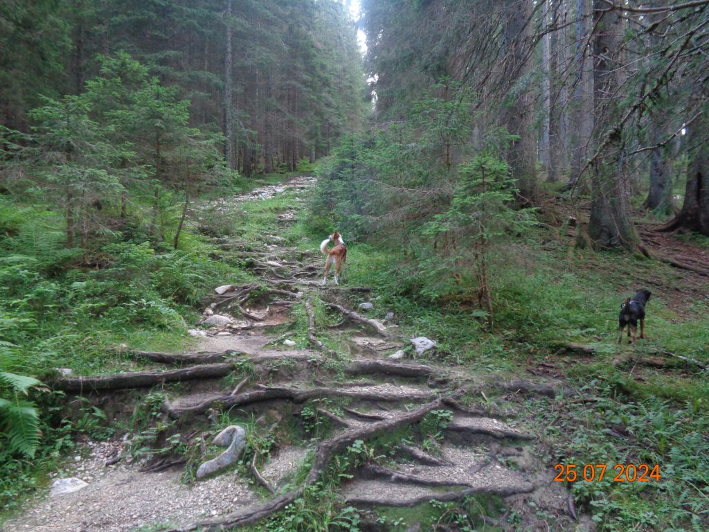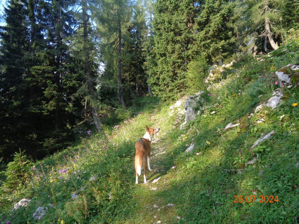 Nadaljevale smo rahlo desno. Prvi del poti je potekal po lahko sledljivi poti.