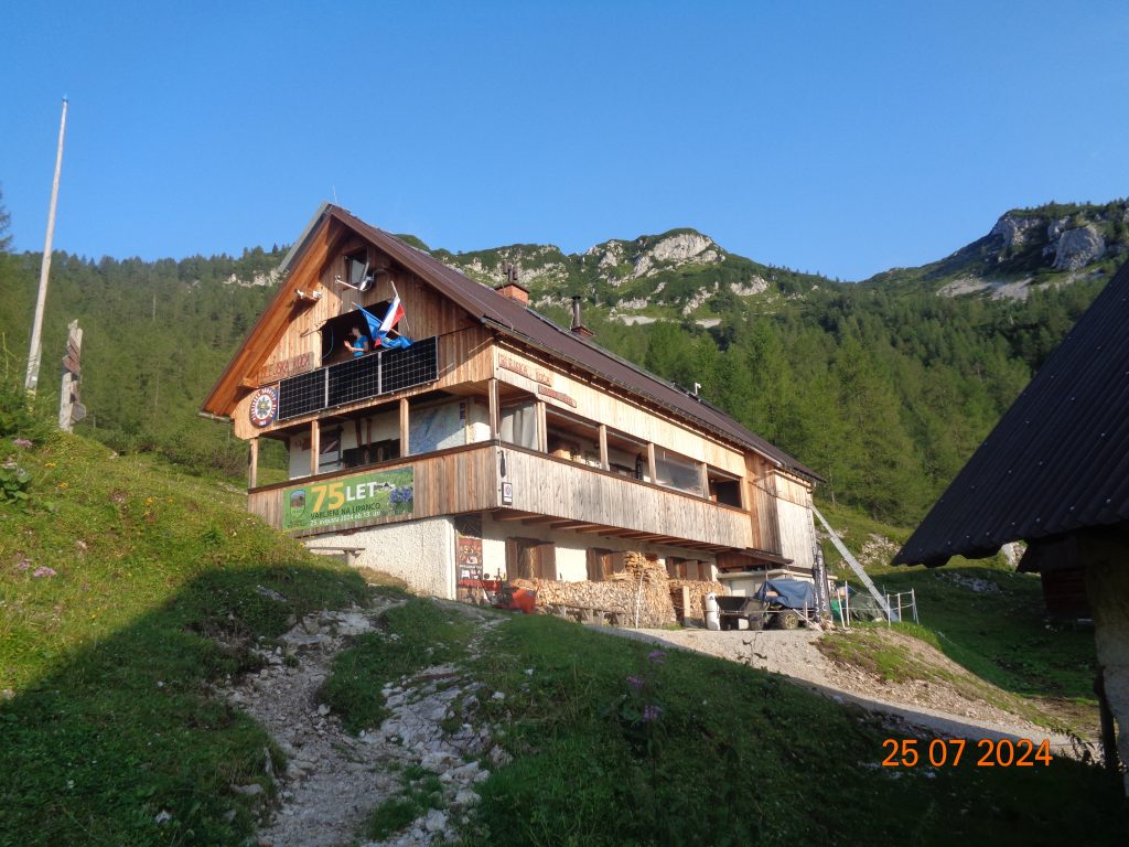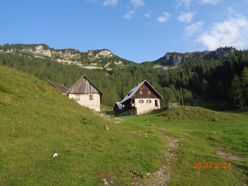 Pri NOB spomeniku smo šle ostro desno in prišle do Blejske koče na planini Lipanca.