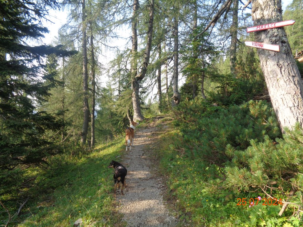 Prišle smo do razcepa, kjer se levo odcepi pot proti Rudnem polju, mi pa smo nadaljevale v smeri Viševnika in Mrežc.