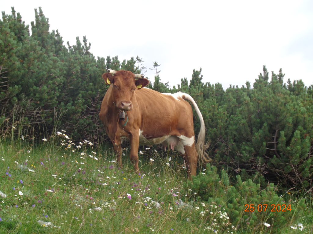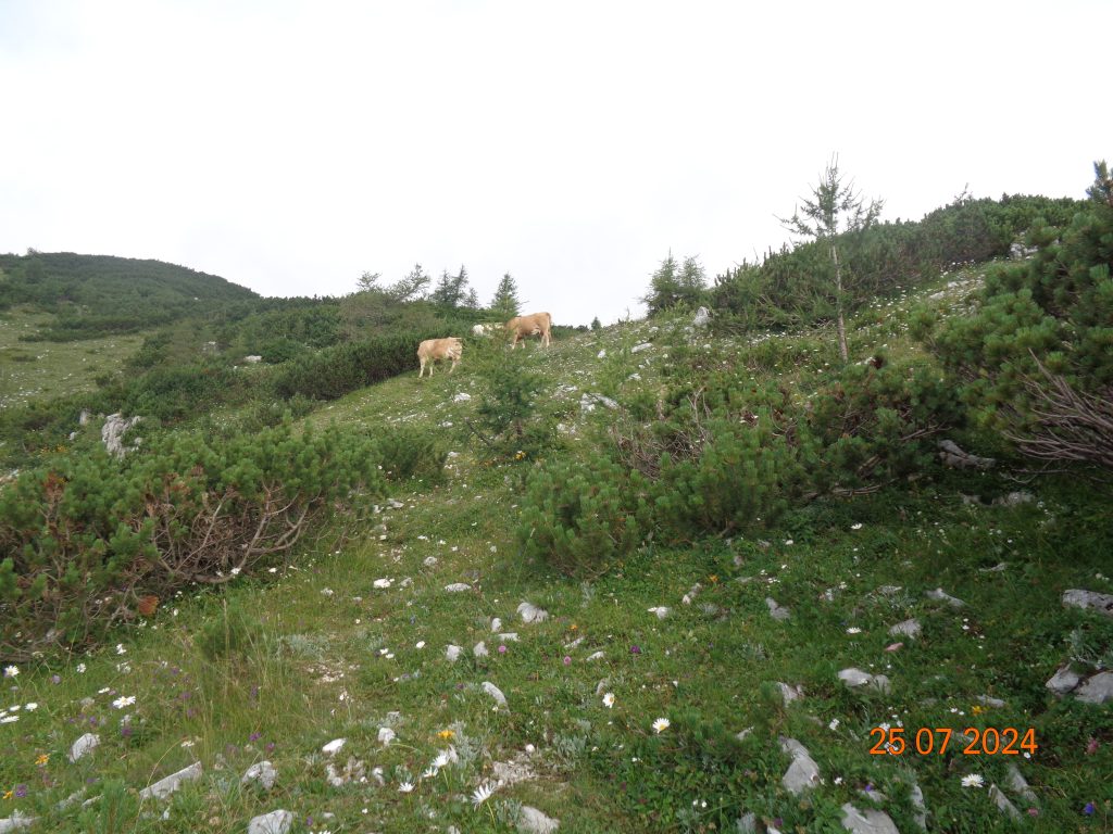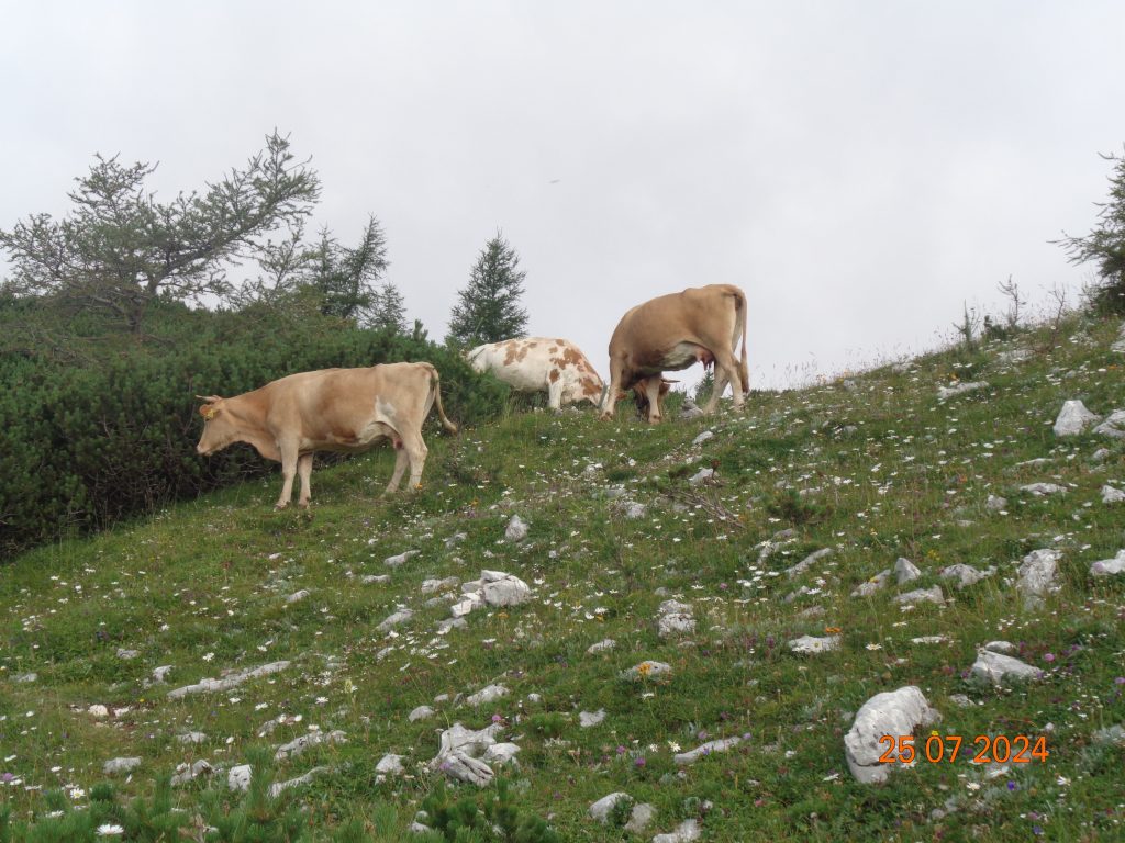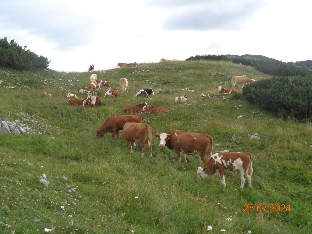 Nekje na sredini smo prišle do mesta, kjer so se na markirani poti in ob njej pasle krave. Tu smo šle z markirane poti, da smo se ognile kravam.