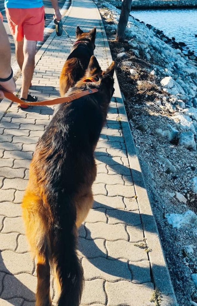 Bivali smo v velikem apartmaju Bubica z veliko ograjeno teraso. Dejansko sta oba apartmaja povezana z isto teraso, zato smo rezervirali kar oba, da smo bili sami v celem nadstropju. Psi so dobrodošli v celotni hiši. Gospodar je rekel, da se mu v vseh letih menda še ni zgodilo, da bi v istem terminu imel v vseh apartmajih pse. Vsi psi so bili tako pridni, da sploh nismo vedeli ,da so dejansko naši sosedje.