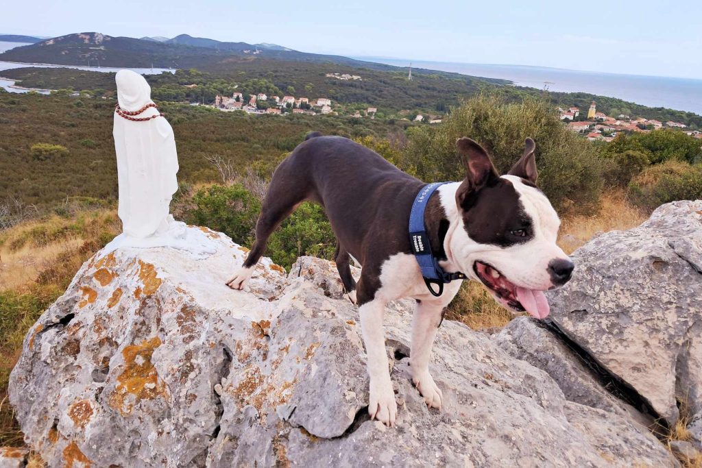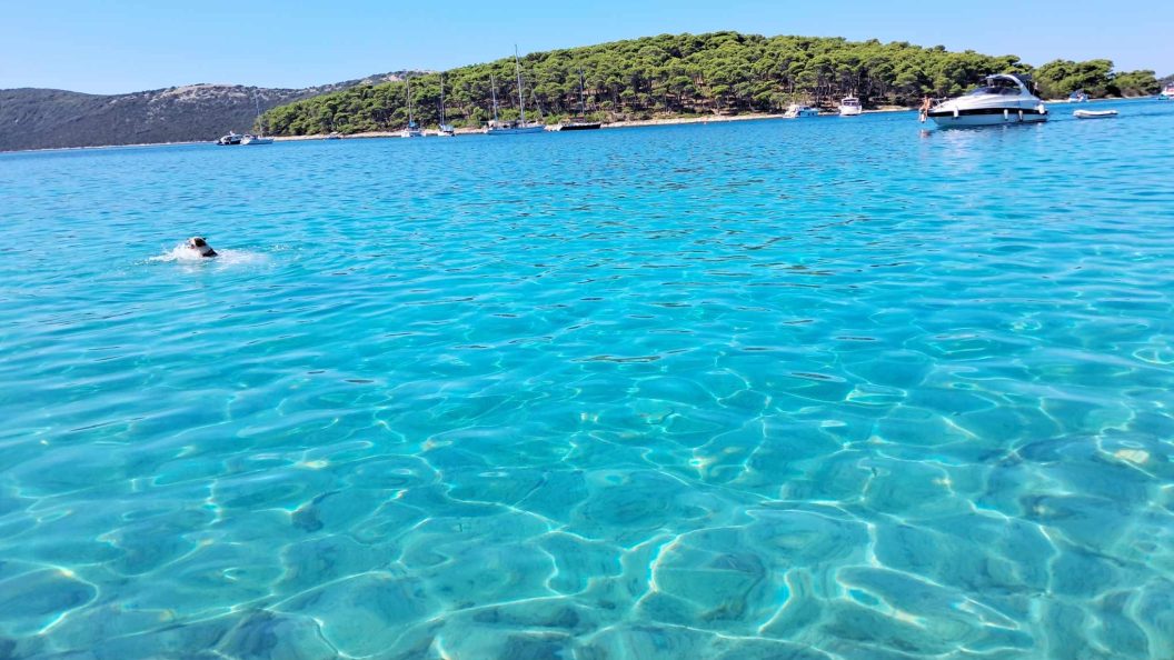 Čeprav bi se naša štirinožna prijateljica najraje cele dneve kopala in čofotala v morju (mi pa bi se ukvarjali s posledicami zaužitja slane vode), smo si vseeno vzeli čas in raziskali otok. Povzpeli smo se na Stražo, ki ponuja čudovit razgled na sosednje otoke, obiskali koncentracijsko taborišče, kjer je bilo med 2. svetovno vojno zaprtih več kot 20.000 ljudi, ki se niso strinjali s fašizmom, prečesali otok podolgem in počez. Največ smo se pa seveda kopali in uživali v kristalno čistem dalmatinskem morju. Do naslednjič.”