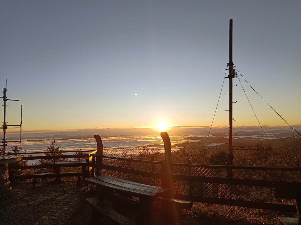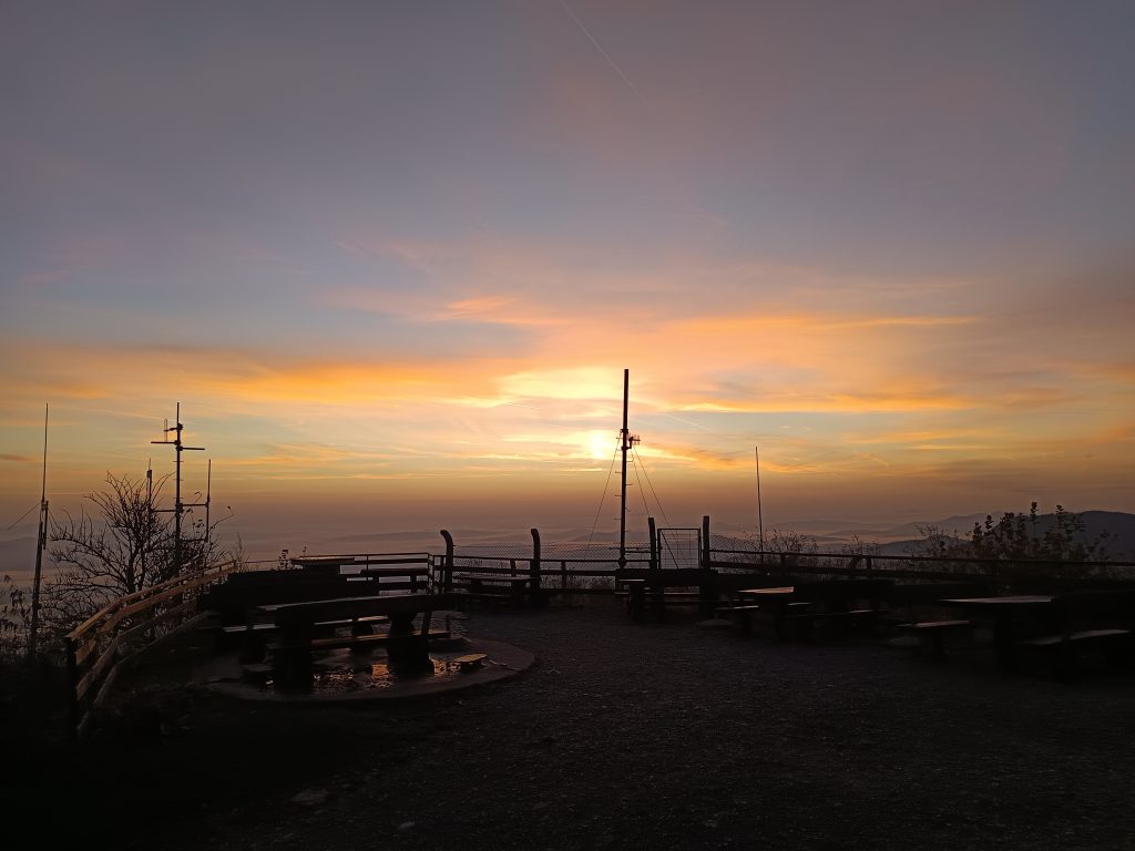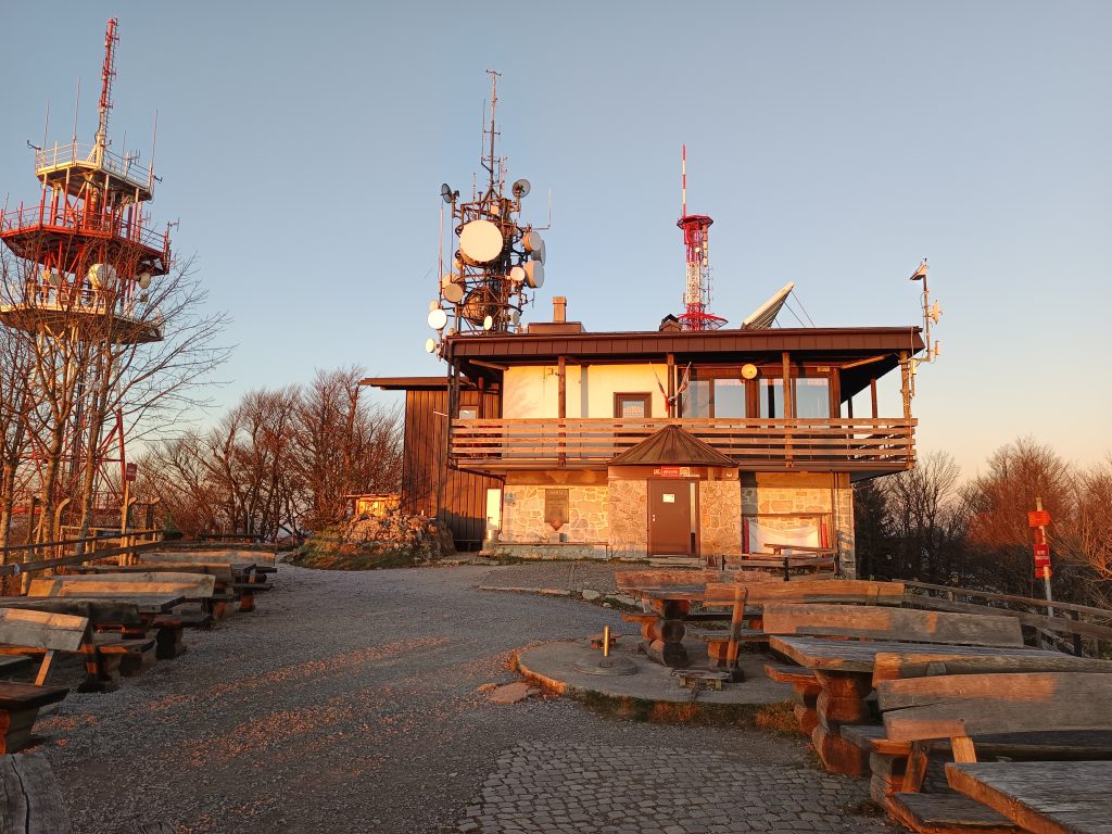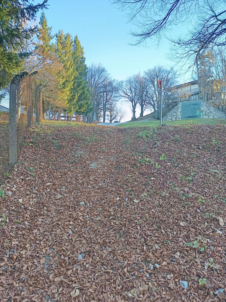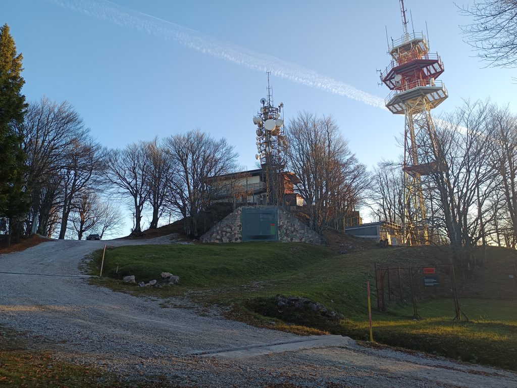 Nekaj metrov hodimo ob ograji do ceste. Ko stopimo na cesto nas do vrha loči le še minuta vzpona.