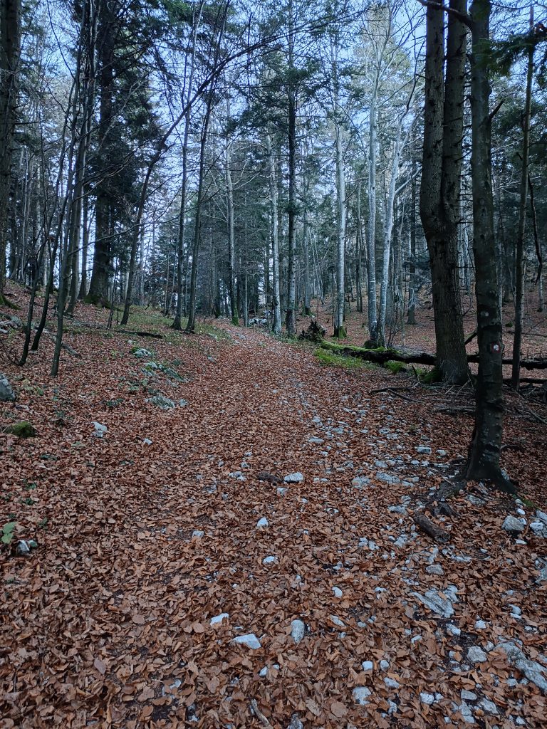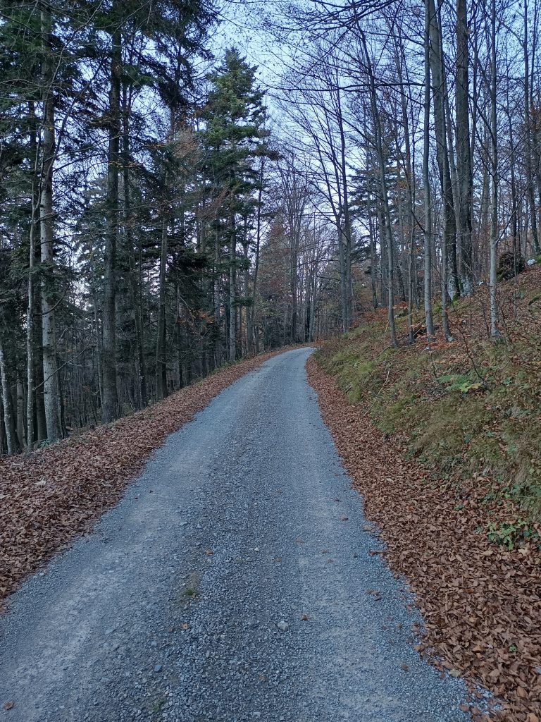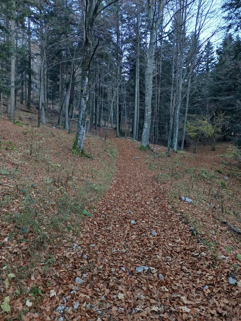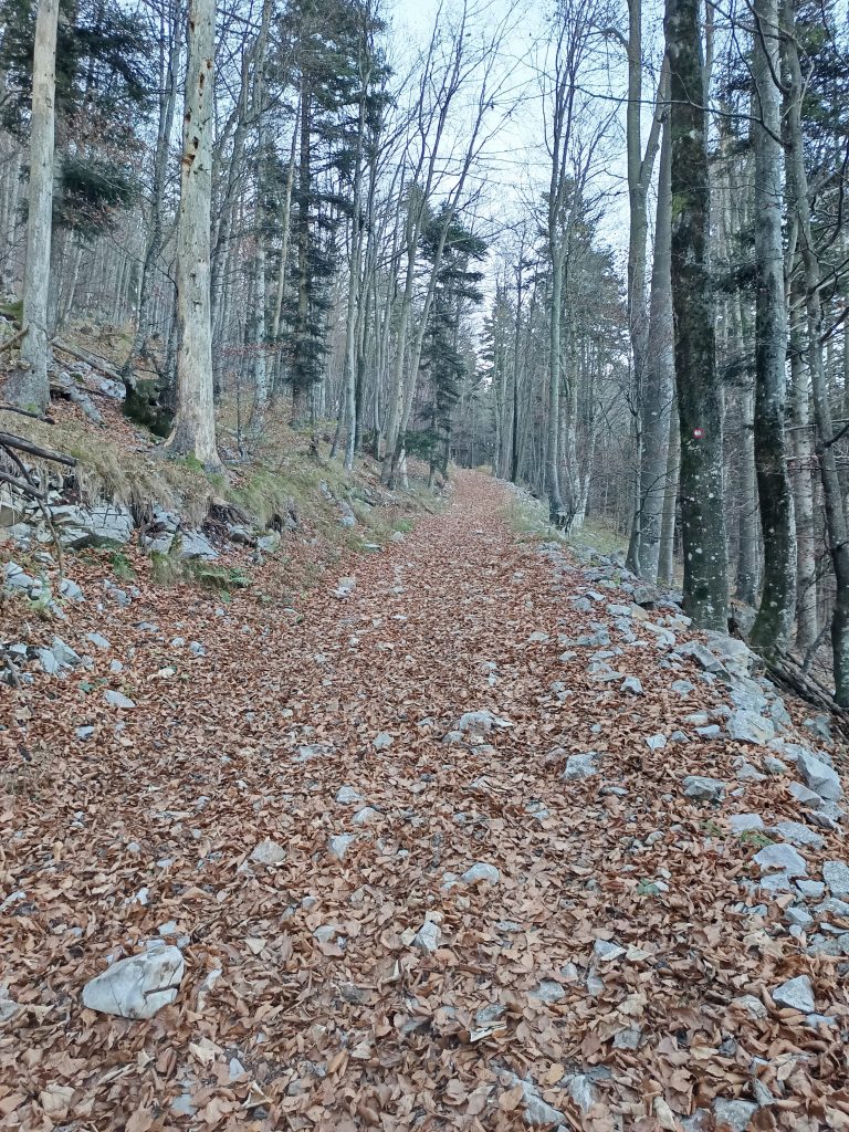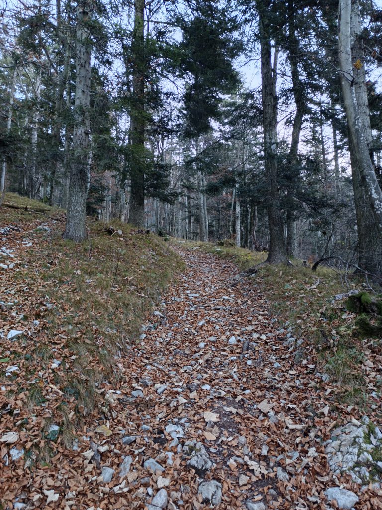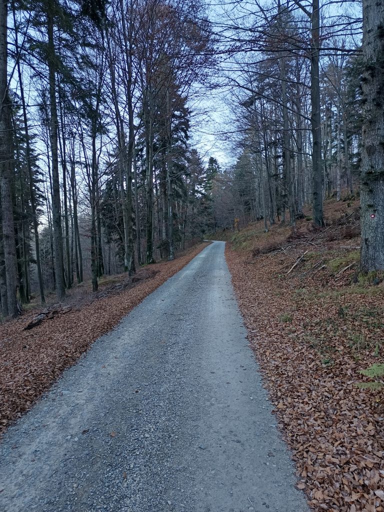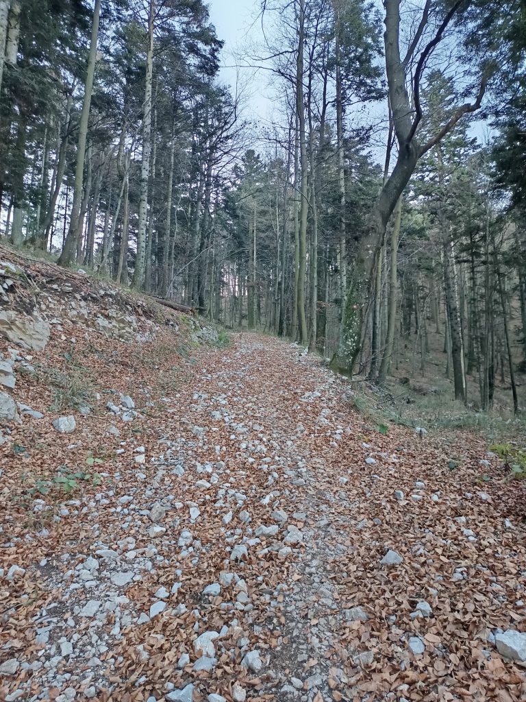 Ker nisem ljubiteljica cest, nadaljujemo zmerni vzpon po kolovozu, ki se prečno vzpenja.