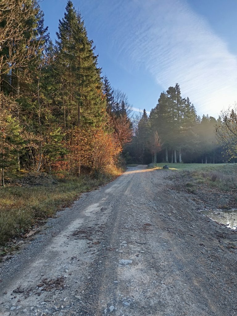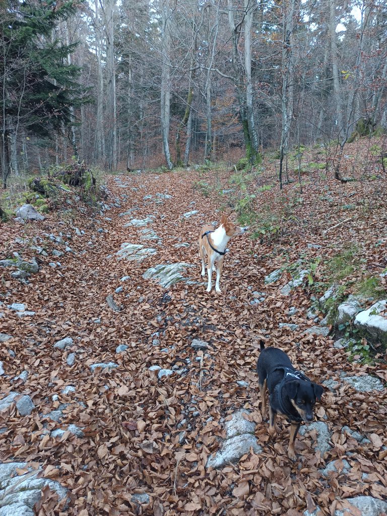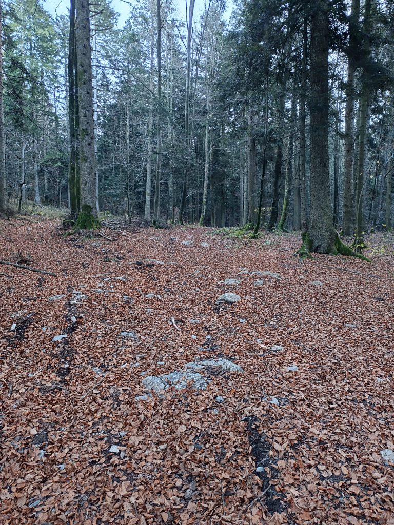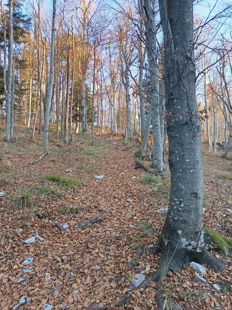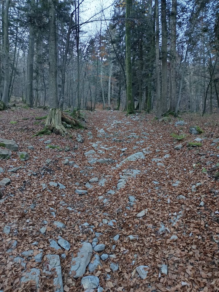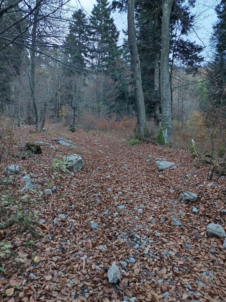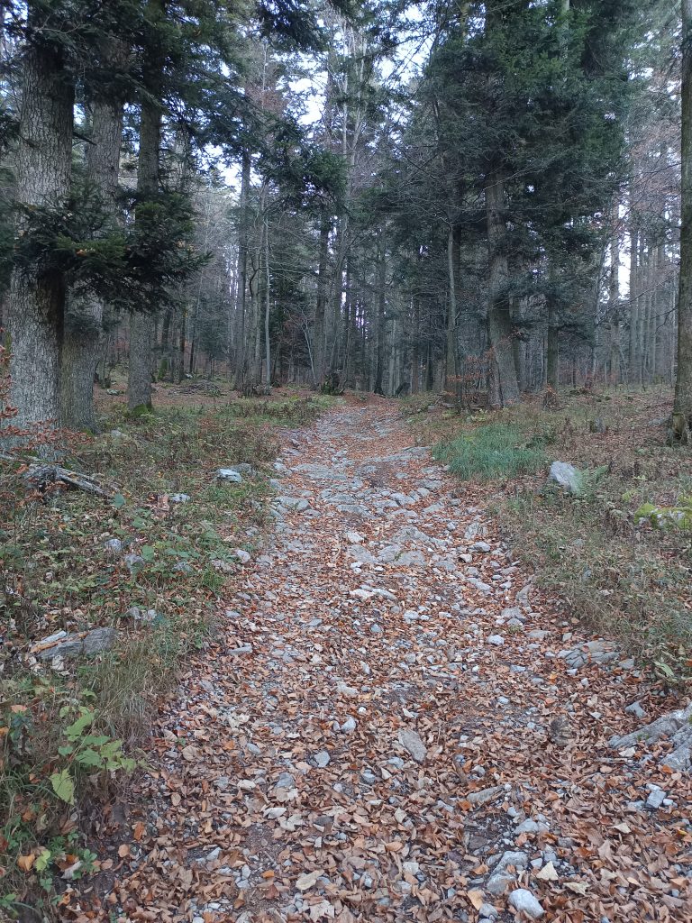 Ker nisem ljubiteljica cest, nadaljujemo zmerni vzpon po kolovozu, ki se prečno vzpenja.