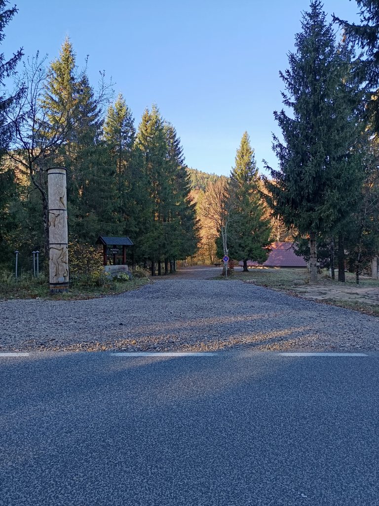 Vozimo proti Rakitni. Parkiramo lahko na primernem mestu v bližini Polharskega doma, ki se nahaja med Lovsko kočo Plehanov laz in odcepom ceste na Krim. Jaz se z avtom odpeljem dlje in parkiram na primernem mestu v gozdu.