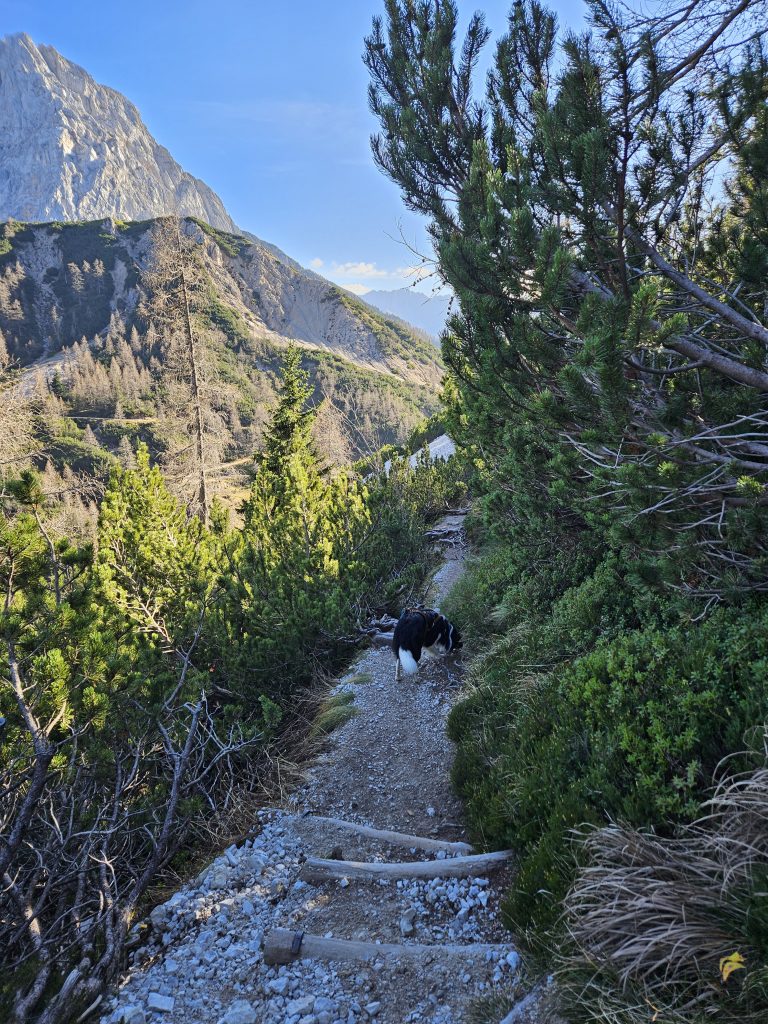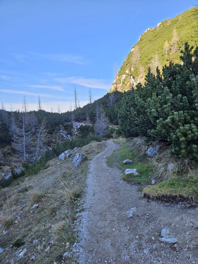 Sprva se pot postopoma vzpenja ob poti nas spremljajo Borovci in čudoviti razgledi.