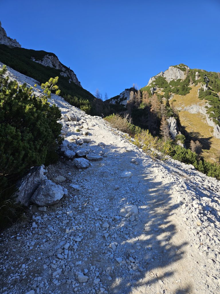 Na dveh delih je pot obdana s skalnatim pobočjem vendar nič hujšega, vseeno previdnost ni odveč.