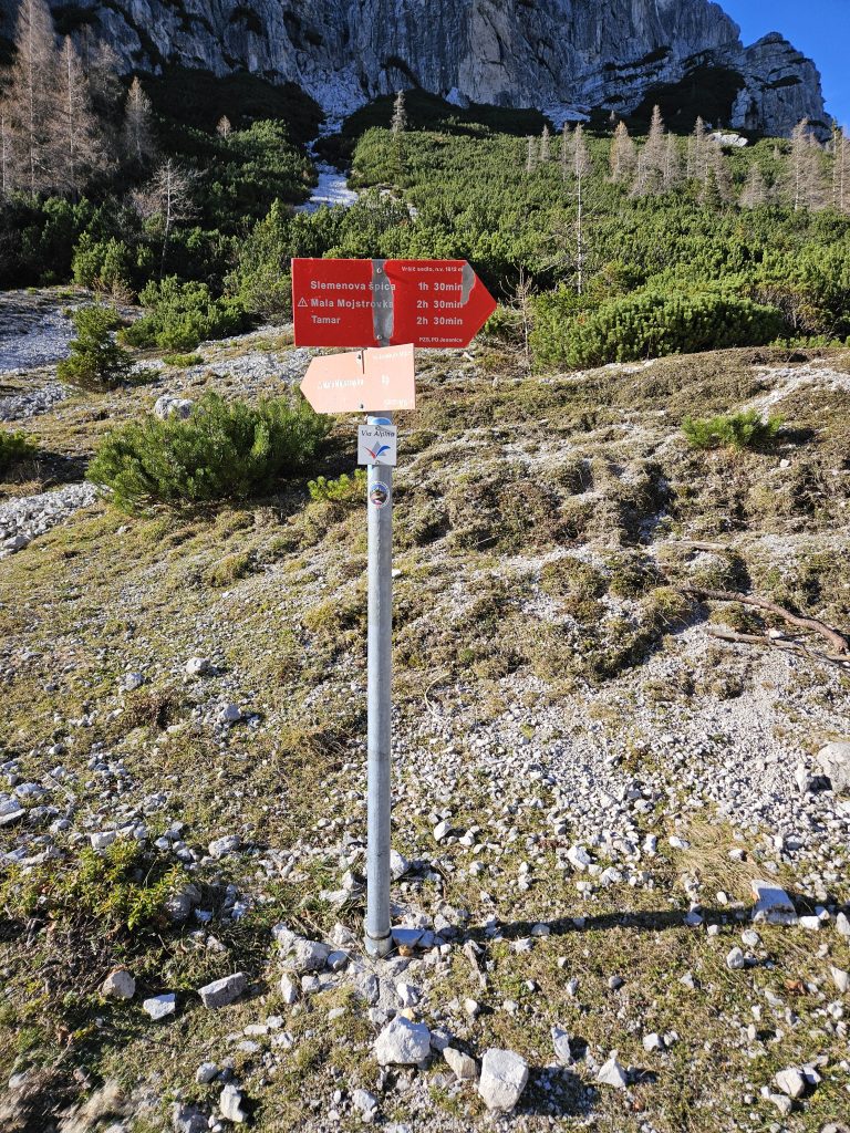 Na Vršiču parkiramo na parkirišču ob cesti in se usmerimo do pohodniškega smerokaza za Tamar, Malo Mojstrovko in Slemenovo špico. Parkirnine ni.