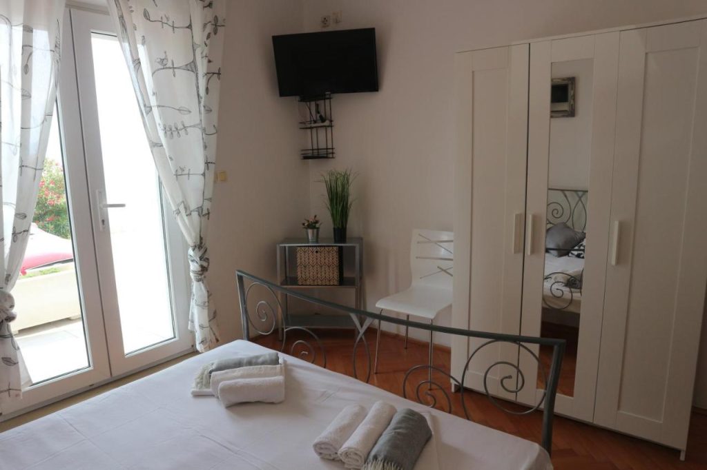 Notranjost apartmaja je zasnovana funkcionalno in udobno. Ima eno prostorno spalnico ter dnevni prostor z raztegljivim kavčem, ki lahko služi kot dodatno ležišče. Apartma je idealen za pare ali manjše družine, ki si želijo mirnih počitnic ob morju in hkrati dostopa do živahnega mestnega dogajanja v Omišu.