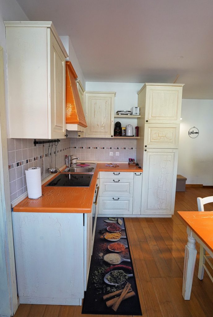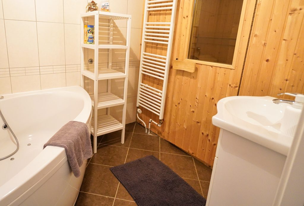 S svojimi 75m2 velikosti, je ta prostorni apartma idealen za družine ali skupine prijateljev, ki si želijo udobno in prostorno bivanje. Udobno se namestite na sedežno garnituro ali uživajte v obroku v jedilnici, medtem ko je kuhinja z vso opremo, vključno s pomivalnim strojem, pečico in hladilnikom, pripravljena na kuharske podvige.