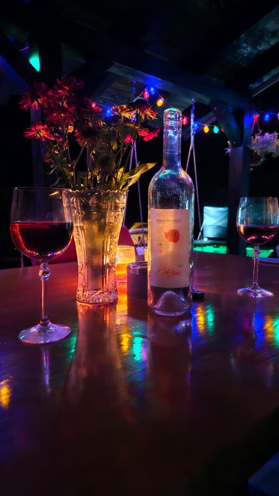 Zunaj boste našli številne rastline, rože in drevesa, ki ustvarjajo čudovito vzdušje. Sprostite se na udobnih ležalnikih in uživajte v idilični tišini.