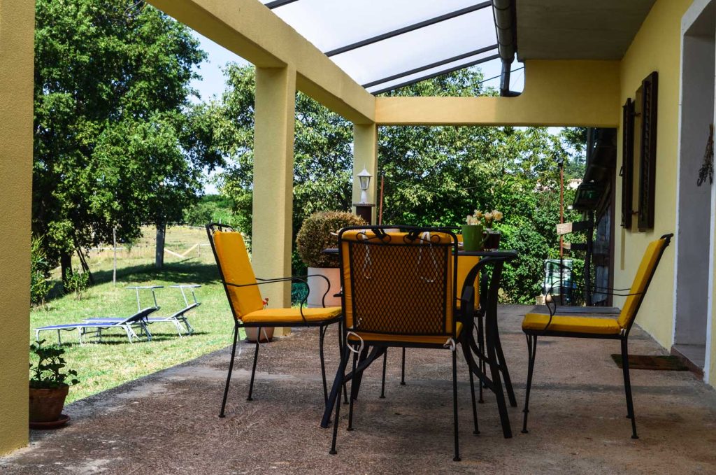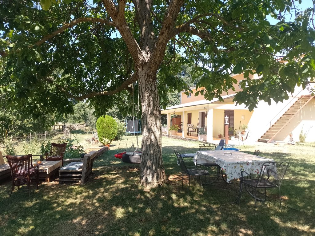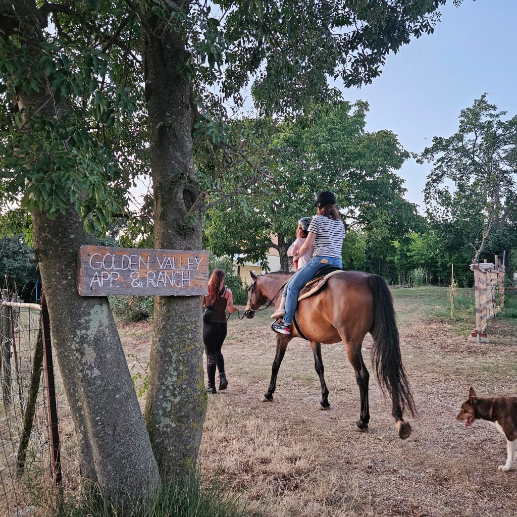 Na zadnjem delu ranča Golden Valley je prostor za sedenje in sprostitev v senci velikega orehovega drevesa (med uživanjem pijače ali hrane), zvečer lahko opazujete sončni zahod, pečete na žaru, tam je tudi hlev za konje, vinograd, majhen vrt in bivališča njihovih hišnih ljubljenčkov.