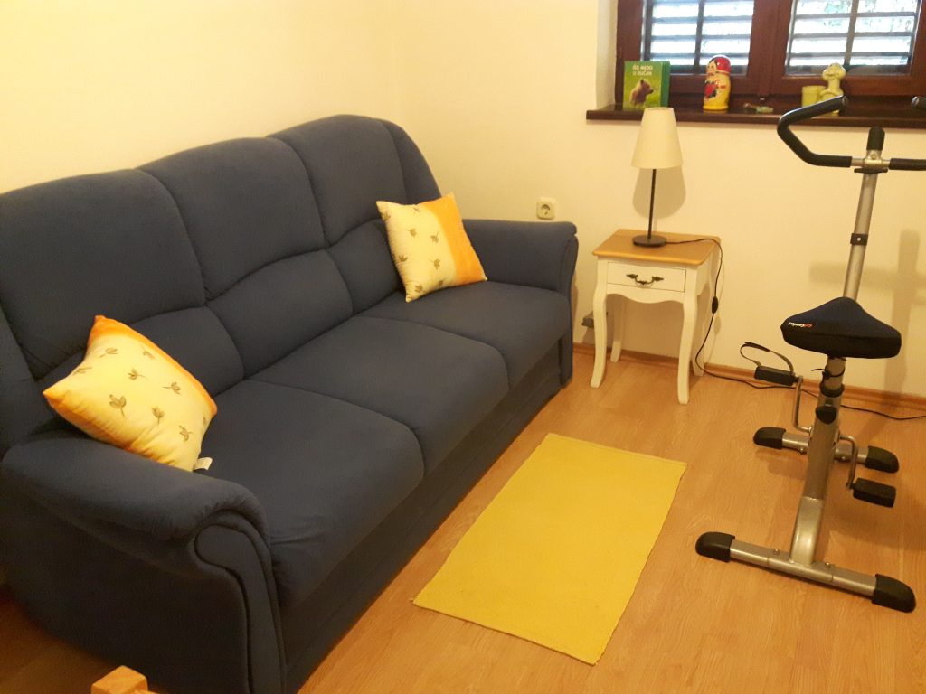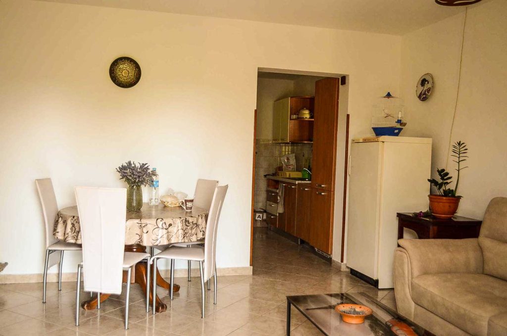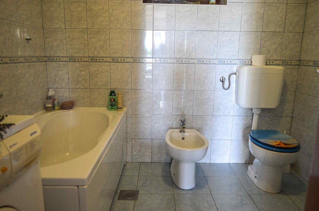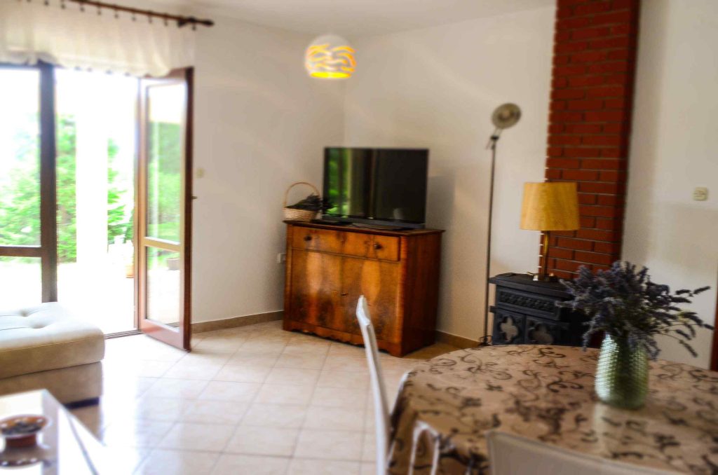 Apartma zavzema celotno pritličje hiše. Njegova površina je 100 m². Sestavljajo ga tri udobne spalnice, v eni je zakonska postelja in enojna postelja, druga z zakonsko posteljo in tretja z raztegljivim kavčem. Poleg tega ima veliko dnevno sobo z jedilnim kotom, dobro opremljeno kuhinjo in dve kopalnici s straniščem. Iz dnevne sobe je izhod na veliko teraso, ki se razteza po sprednjem delu hiše.