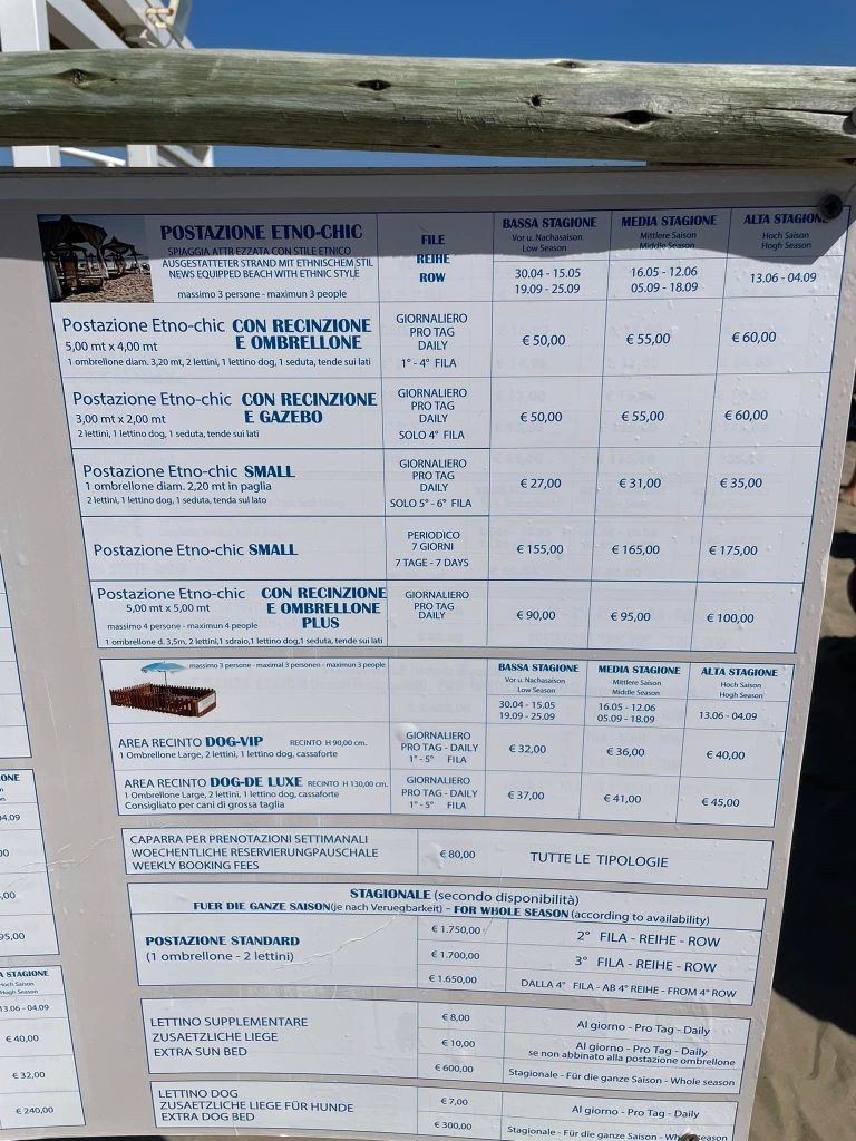 Senčniki in ležalniki so na voljo za doplačilo, sicer pa lahko prinesete svoj senčnik in se nastanite na koncu te urejene pasje plaže, kjer uporaba ni plačljiva, kužki pa so tam prav tako dobrodošli.