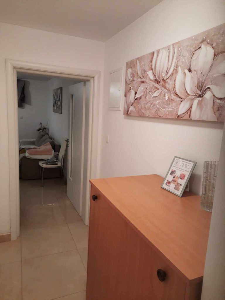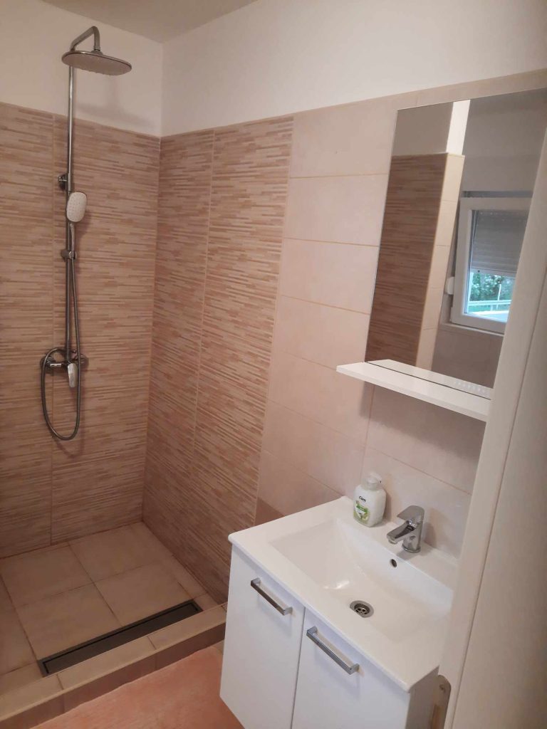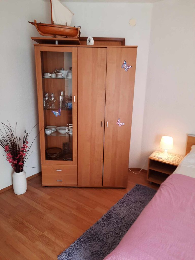 Apartma za 2 osebi se nahaja v pritličju in nima balkona, ampak bočno zunanjo teraso. Ima zakonsko posteljo in vse, kar je potrebno za 2 osebi. Parkirišče je na voljo za hišo.