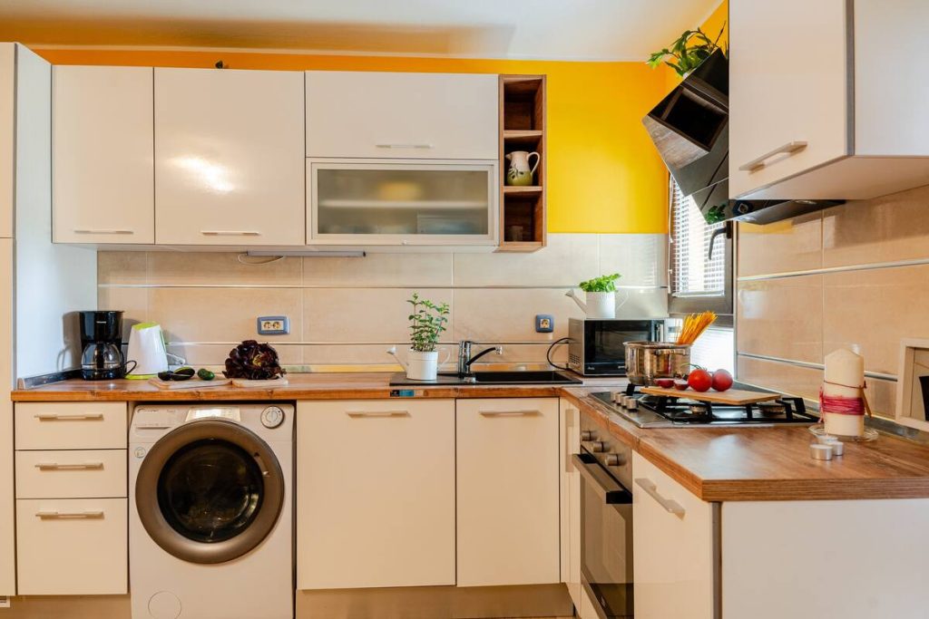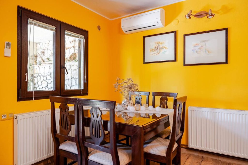 Na terasi lahko uživate tudi v obrokih, pripravljenih v popolnoma opremljeni kuhinji, ki zajema pečico, mikrovalovno pečico, aparat za kavo, grelnik za vodo in pomivalni stroj, ali pa uporabite žar za pripravo jedi na prostem. Hiša ima spalnico z zakonsko posteljo ter dodatno spalnico z dvema ločenima posteljama, primerno za otroke ali dodatne goste. Kuhinja je povezana z dnevno sobo, kjer se nahaja tudi raztegljiv kavč, ki lahko služi kot dodatno ležišče. Kopalnica je opremljena s tušem in straniščem, gostom pa je na voljo tudi pralni stroj za enostavno vzdrževanje osebnih oblačil med bivanjem. Za sprostitev je v dnevni sobi na voljo 42-palčni televizor, brezplačen Wi-Fi pa omogoča nemoteno povezavo z internetom za delo ali zabavo. Psi lahko grejo v hišo, samo v spalnice ne, na posteljo in kavč, v tej enoti je dovoljen samo en pes.