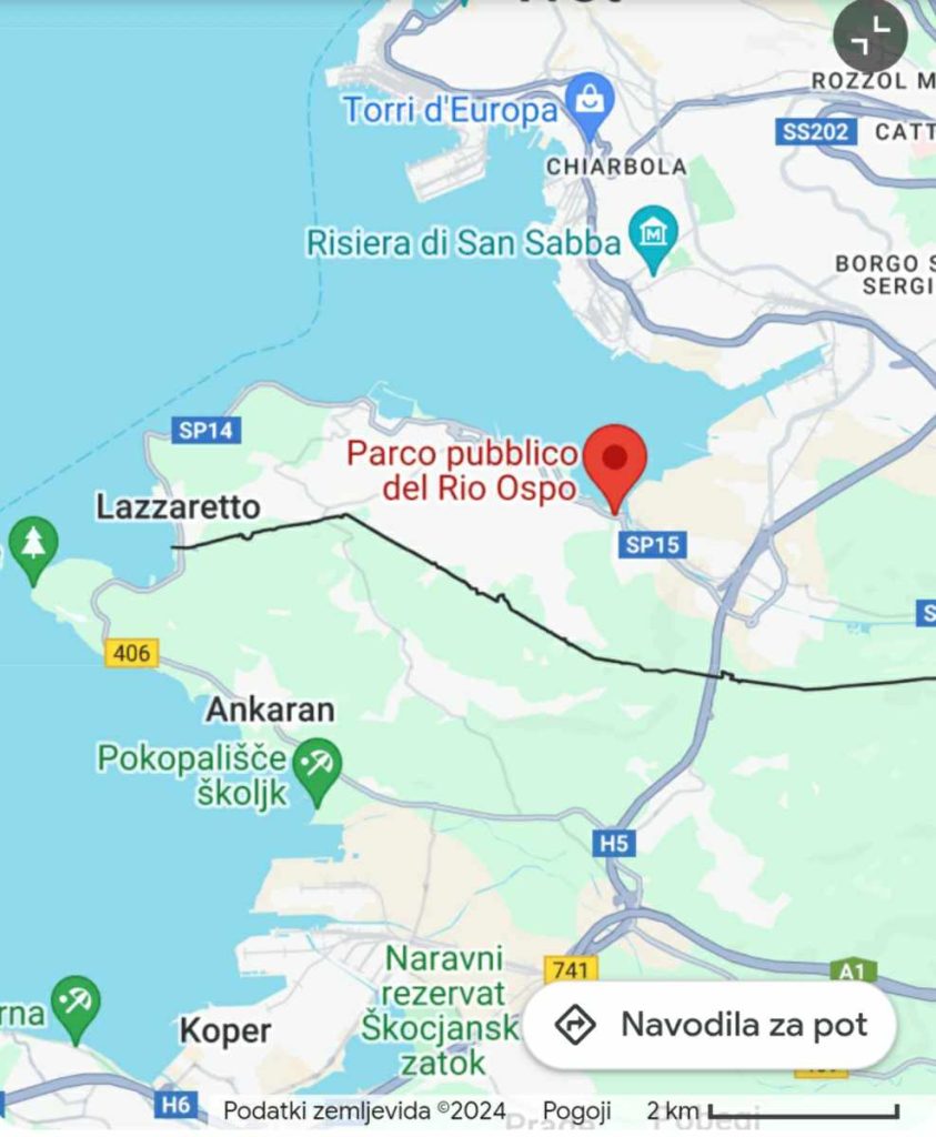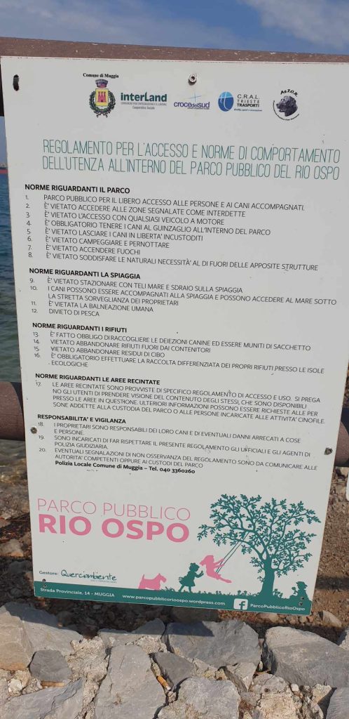 Le 10 minut vožnje od mejnega prehoda z Italijo lahko v kraju Muggia (Milje) najdemo plažo, kjer so dovoljeni tudi psi. Plaža je del Parco publico del Rio Ospo.