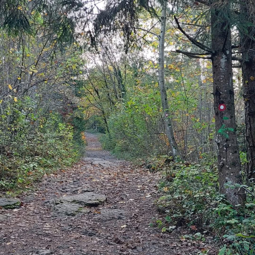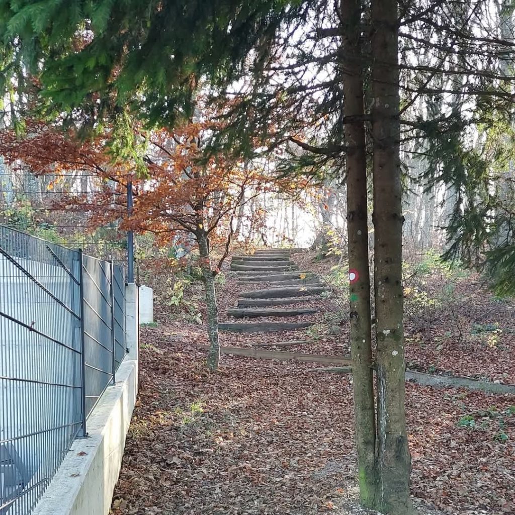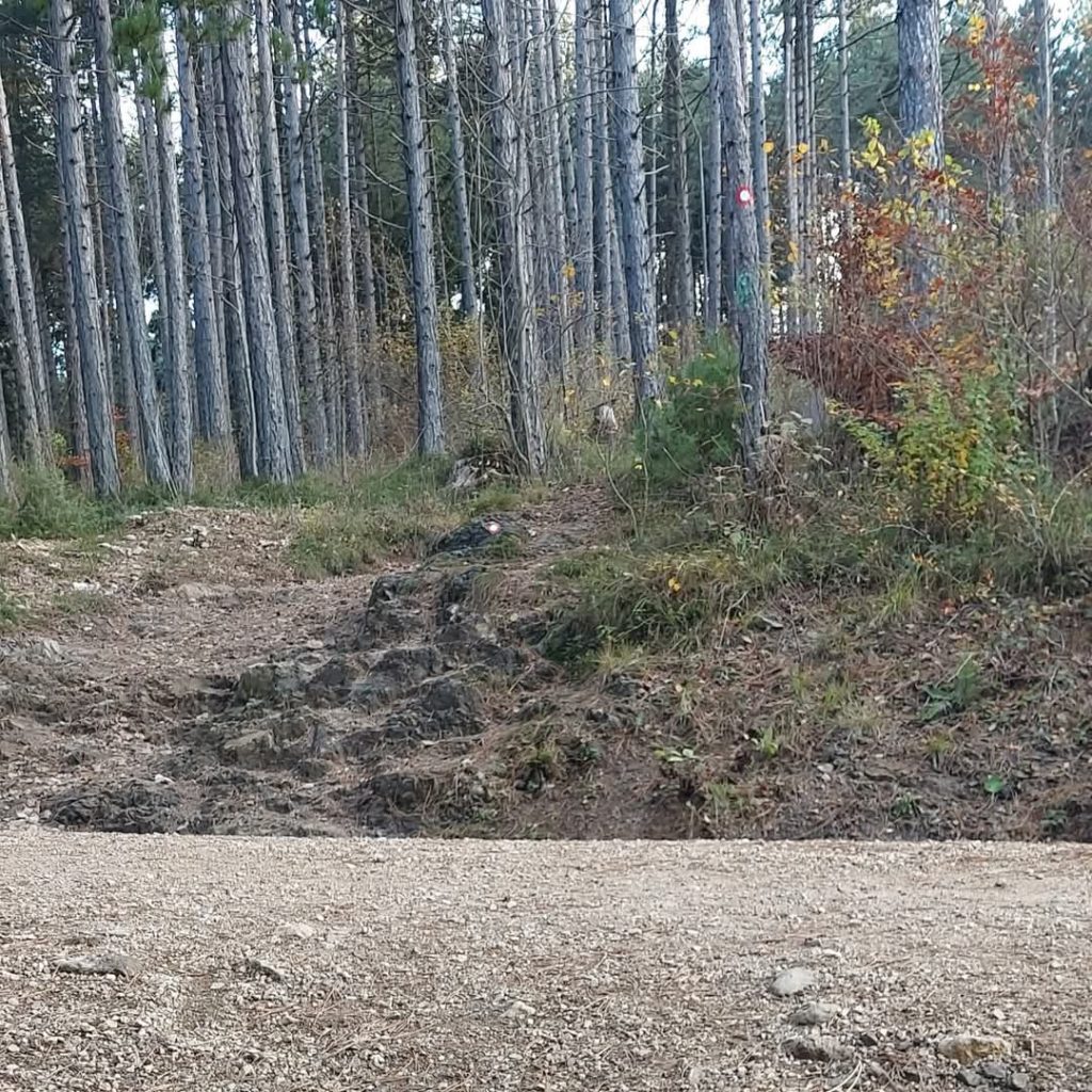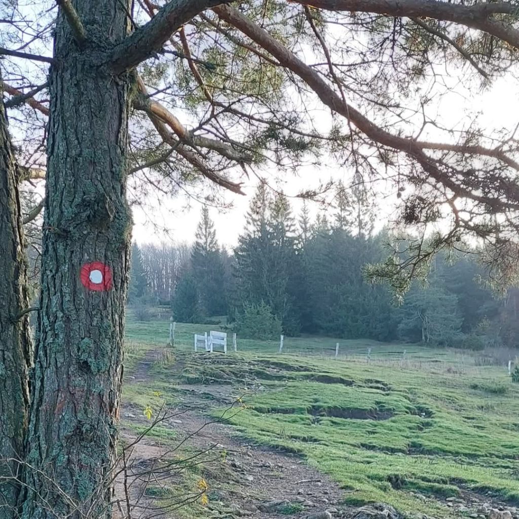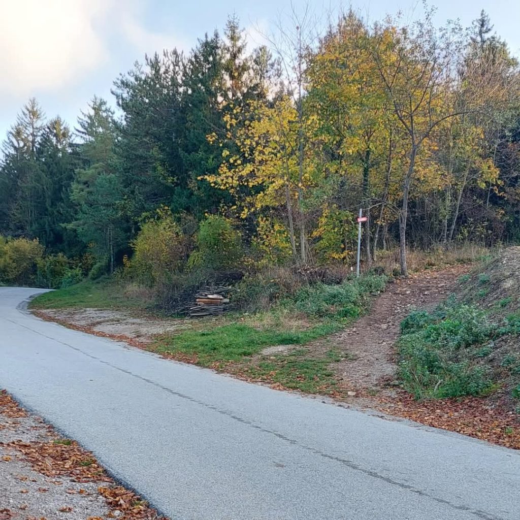 Hodite skozi iglasti gozd, ki ga razdeljuje del s podrastjem. Pot se vseskozi vzpenja. Prečkate še eno makadamsko pot in hodite navkreber in sledite markacijam.