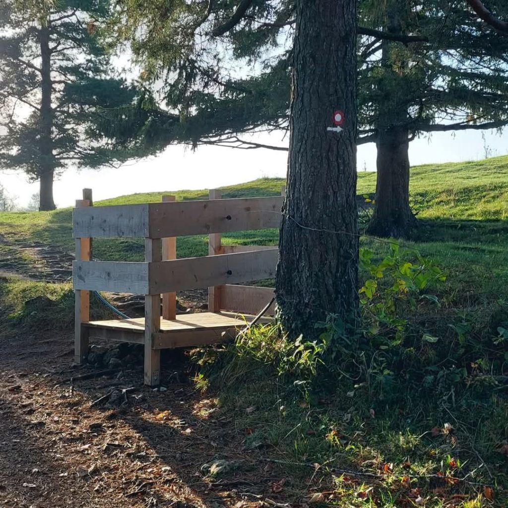 Pot navzgor vas čez nekaj časa hoje usmeri v desno, ko se vendarle malo položi. Ravninski del dosežete, ko obidete od poti odmaknjeno klopco (na desni strani).