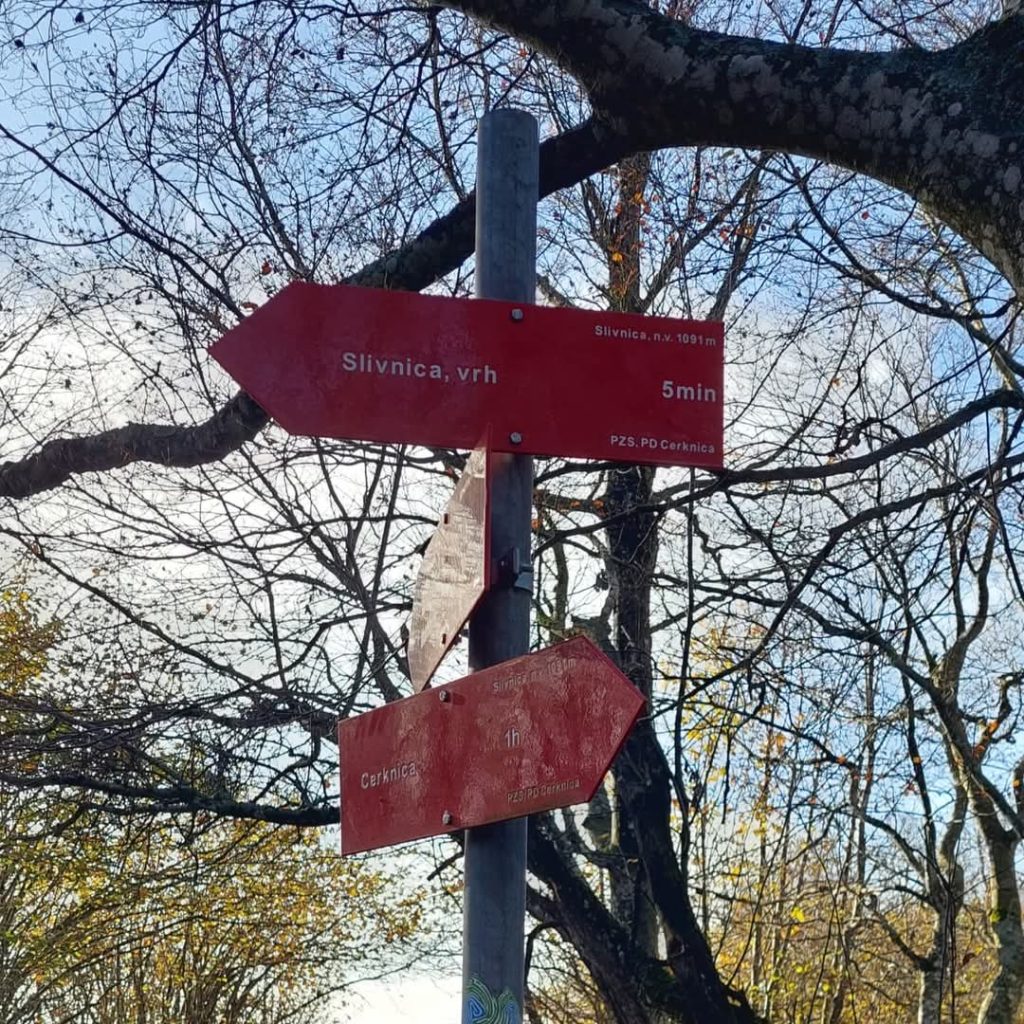 Prehodite makadamsko površino in v nekaj korakih skozi manjši gozd dosežete vrh Slivnice.