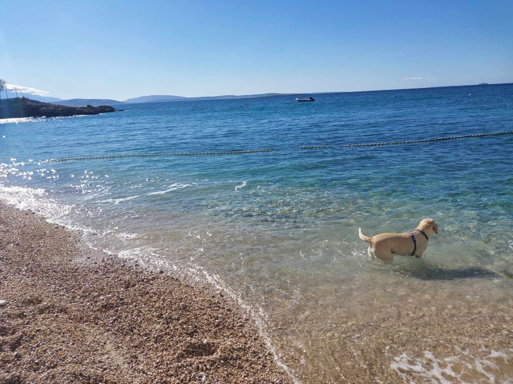 Pasja plaža se nahaja ob robu kampa in je prodnata plaža ter ločena od ostalih plaž.