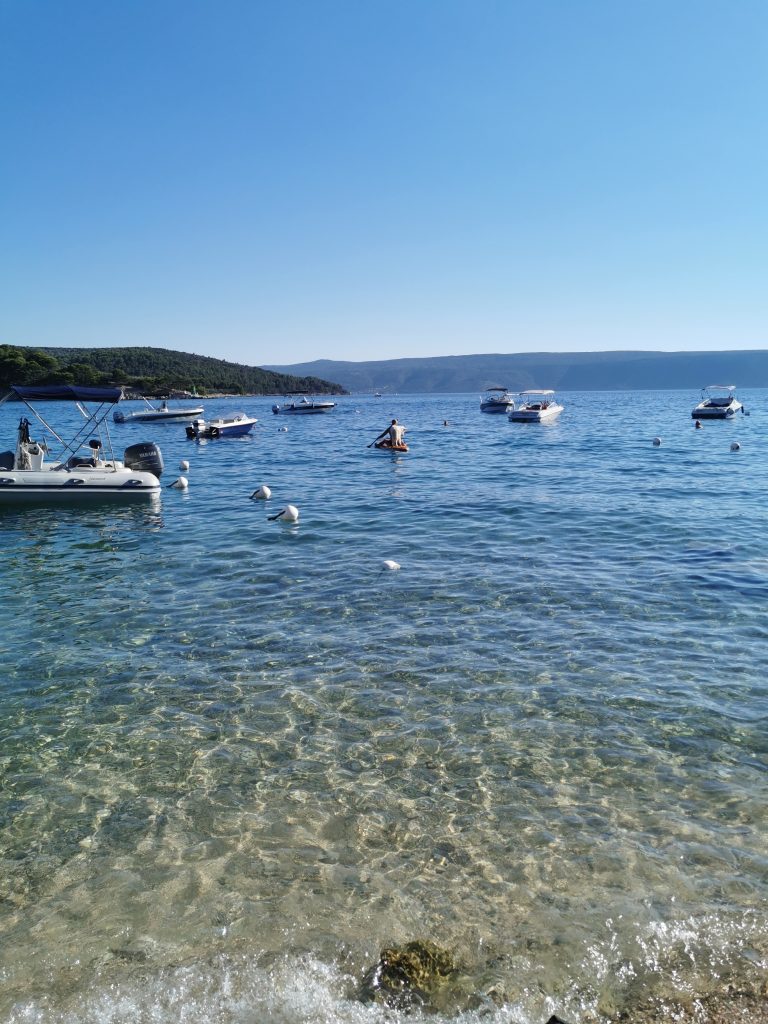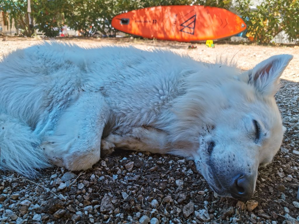 Čeprav je kamp velik, se kužki nekako porazdelijo po plažah, zato se je kdaj zgodilo, da smo bili na kateri celo sami – kljub glavni sezoni. Seveda pa si senco lahko ustvarite sami s senčnikom ali šotorom.