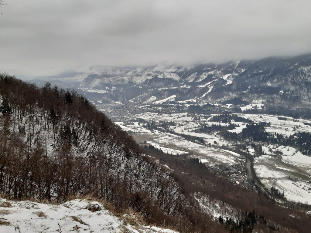 Od tu nadaljujemo levo proti vrhu, do vrha imamo še slabih 10 minut. Med potjo do vrha imamo čudovit razgled na Bohinjsko jezero, Črno Prst in vas Studor. Na dan, ko smo posneli fotografije ni bilo tako čudovitega razgleda.