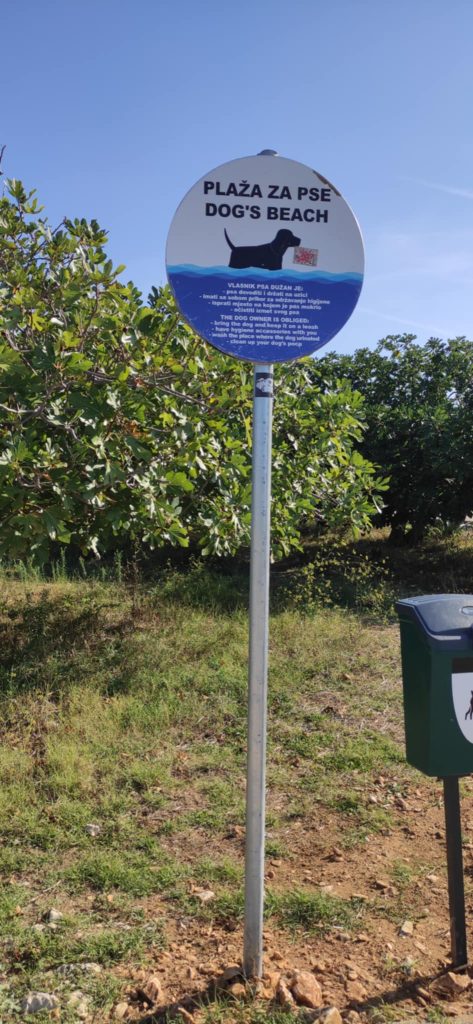 Pasja plaža je označena in ima koš za odpadke (ki so sicer na voljo povsod). Senca je na desni strani sprehajalne poti, medtem ko je plaža na levi.