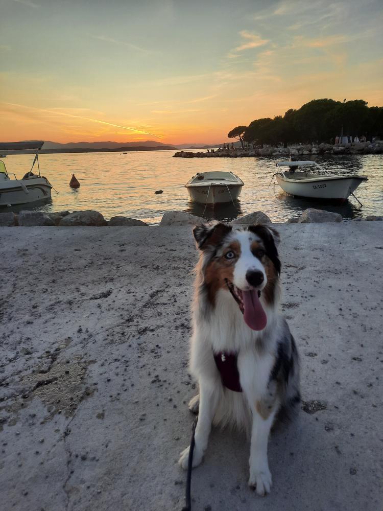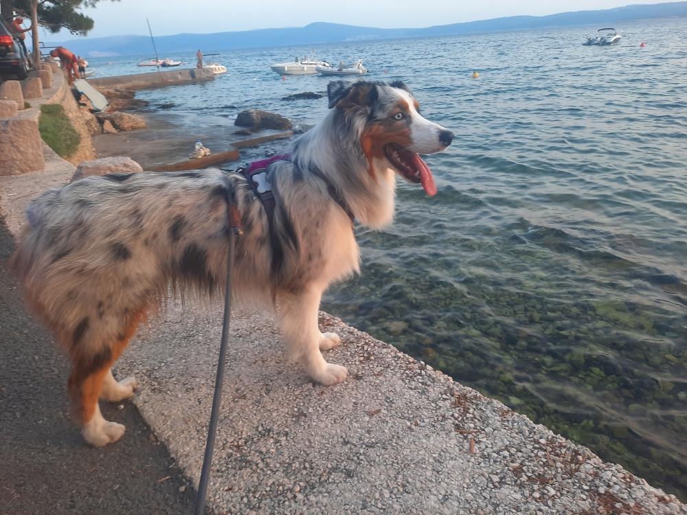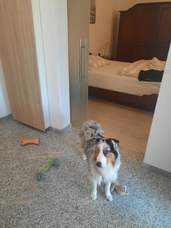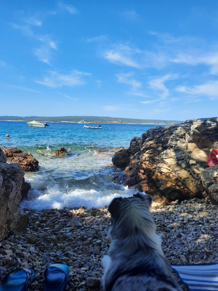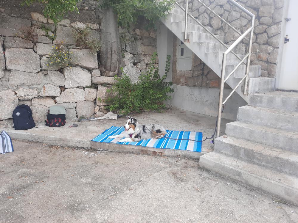 Do uradne pasje plaže je približno 30 minut hoje s počasnim tempom. Obalna pot, ki poteka pod apartmajem in kjer je plaža, sicer uradno ne dovoljuje kopanja psov, vendar v praksi nihče ne komplicira, če je pes le prisoten na plaži.