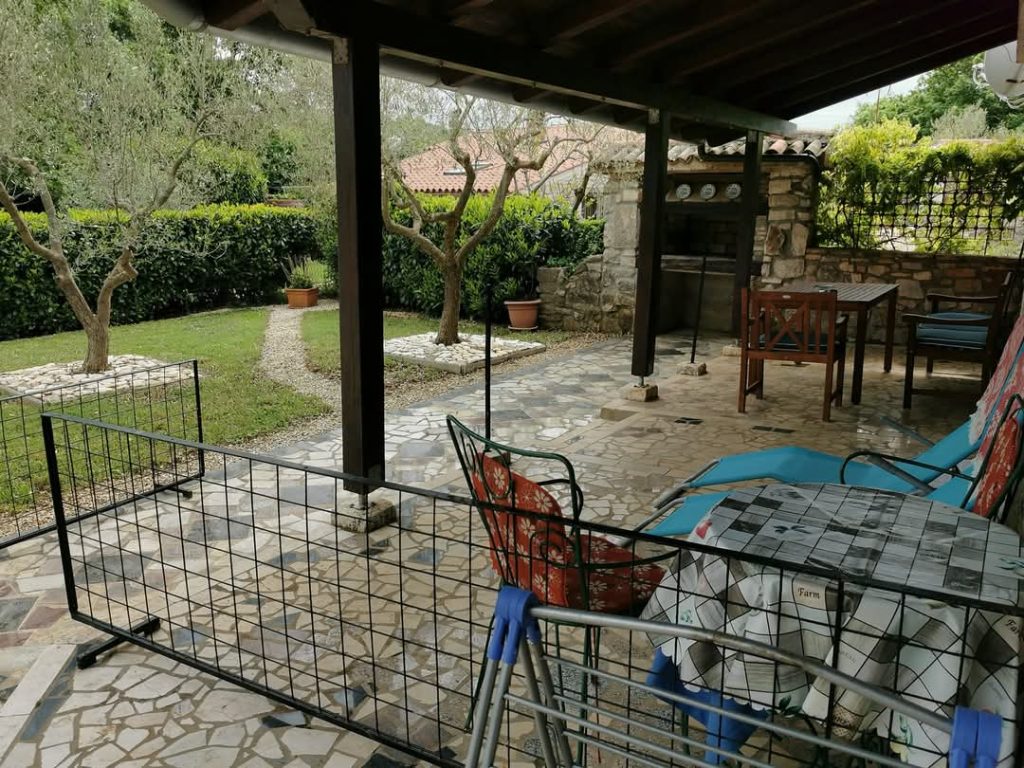 Hiša ima ograjeno dvorišče, teraso, žar, parkirišče. Gostje ne delijo dvorišča, kar jim zagotavlja zasebnost in mir. Hišni ljubljenčki so dobrodošli, ne glede na njihovo število ali velikost.