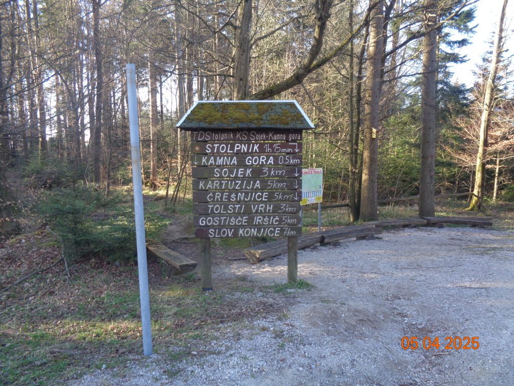 Nadaljevale smo naravnost navzgor na peš pot v smeri Stolpnika (levo Kamna gora, desno Slovenske Konjice), ki se zmerno vzpne.