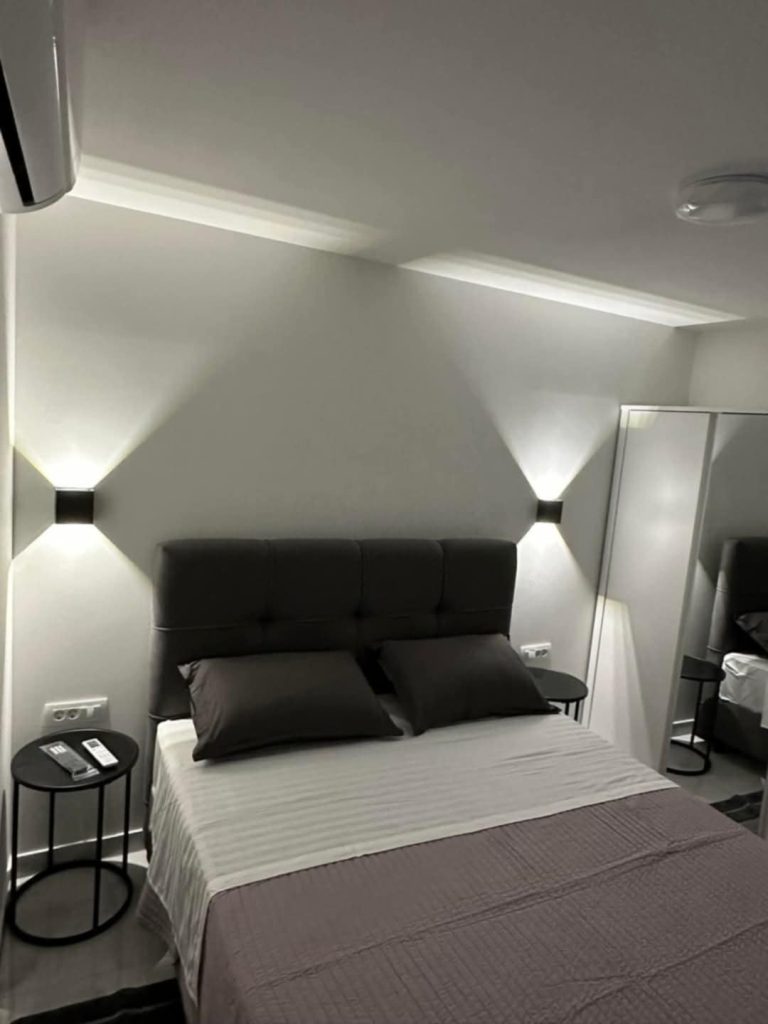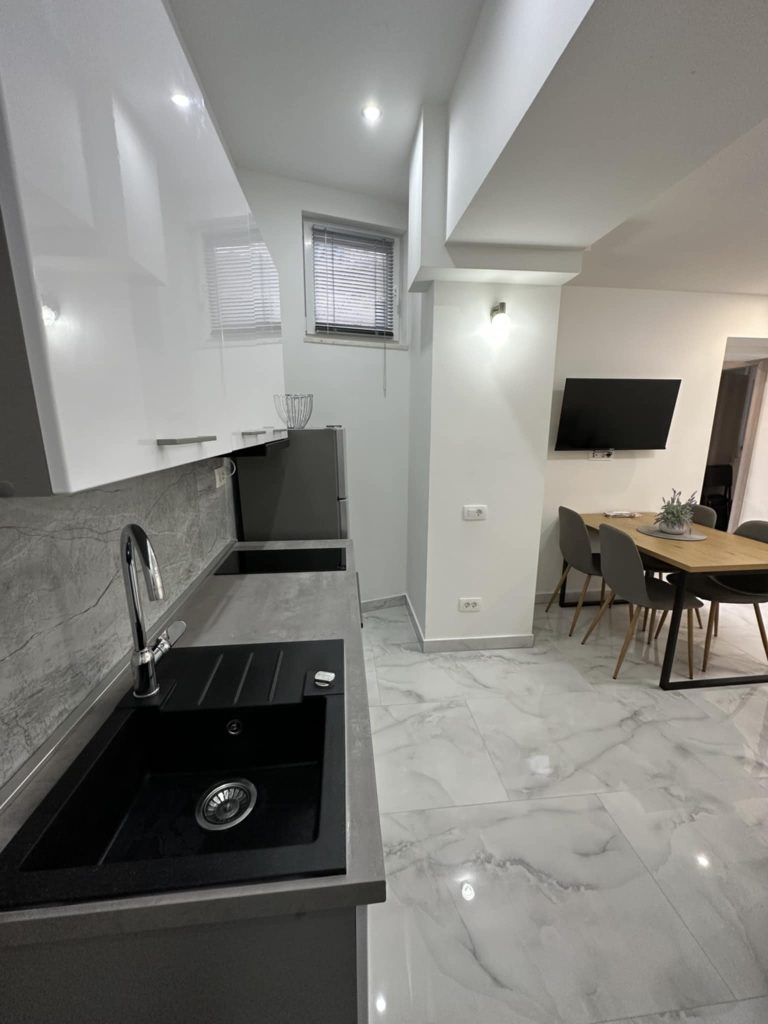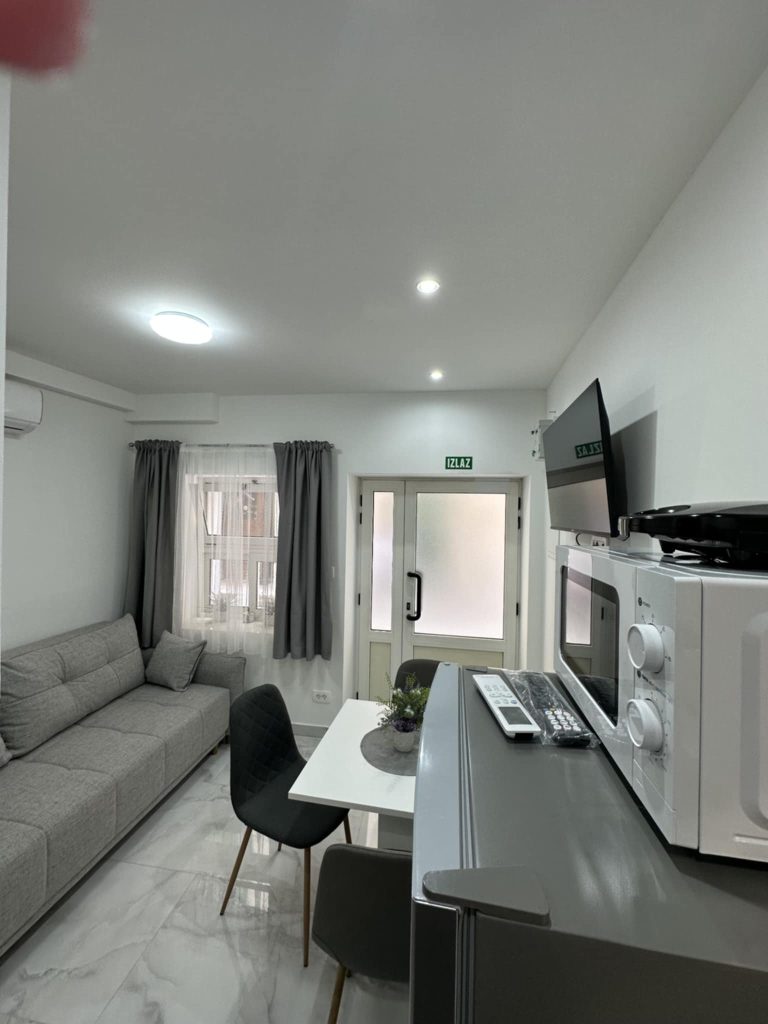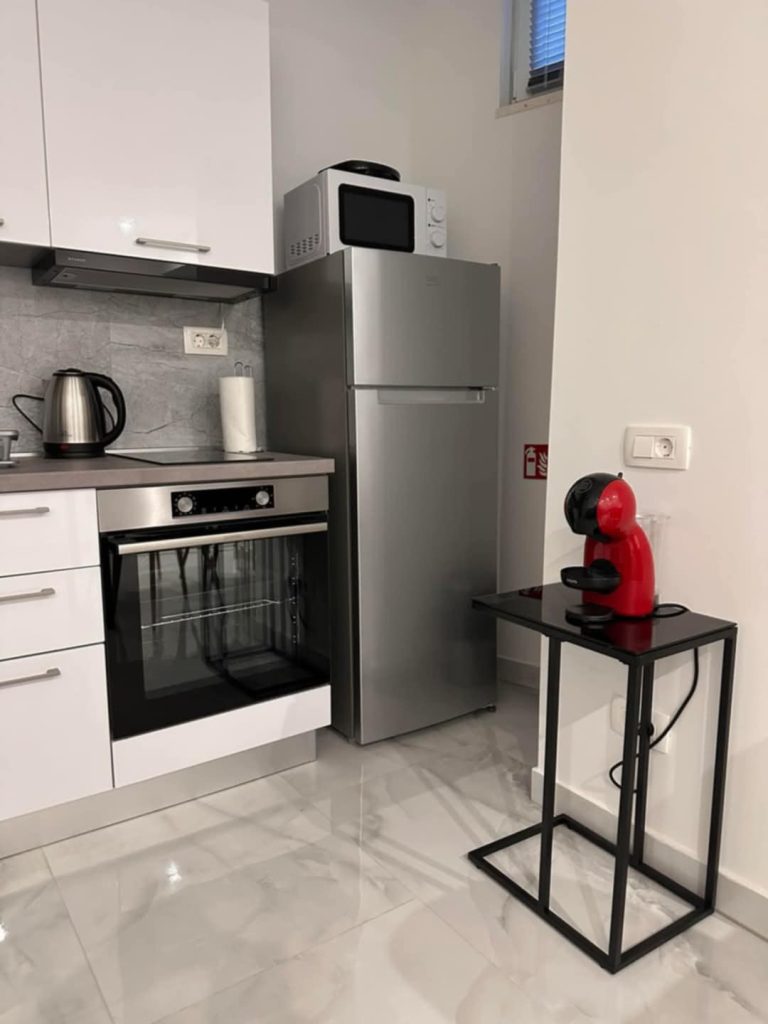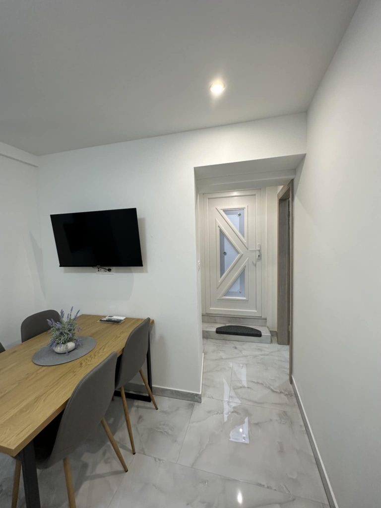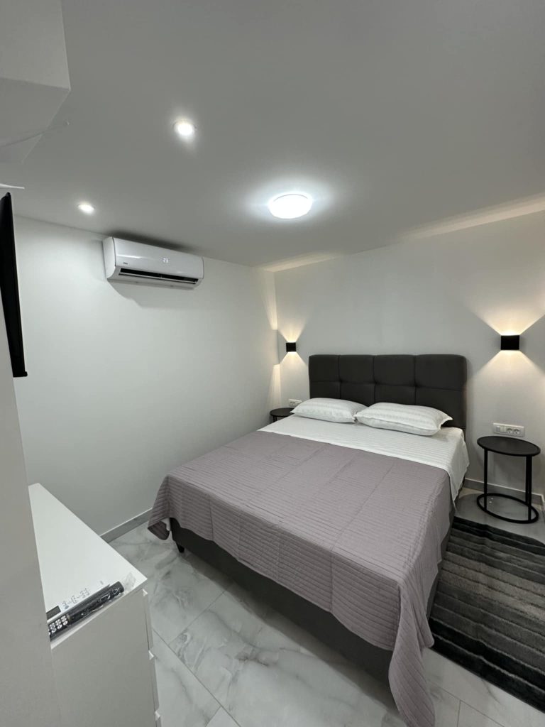 Na voljo sta dva apartmaja za 2+2 osebi. Nedavno so prenovljeni in luksuzno opremljeni. Imajo elegantno kopalnico, prostorno spalnico z zakonsko posteljo (160 x 200 cm) ter sodobno urejeno kuhinjo in dnevno sobo z udobnim raztegljivim kavčem enake dimenzije. Dnevna soba je opremljena s sedežno garnituro za štiri osebe. Za udobje gostov so na voljo sušilec za lase, brisače, likalnik, pralni in sušilni stroj, steklokeramična kuhalna plošča, pečica, toaster, aparat za kavo Dolce Gusto, mikrovalovna pečica, kuhalnik za vodo, velik hladilnik z zamrzovalnikom ter vse potrebno posodje in kuhinjski pripomočki. Vsak apartma ima dva televizorja (enega v spalnici, drugega v dnevni sobi), dve klimatski napravi ter optični internet z brezplačnim Wi-Fi dostopom. Oba apartmaja imata na voljo tudi stole z mizo pred vhodom.