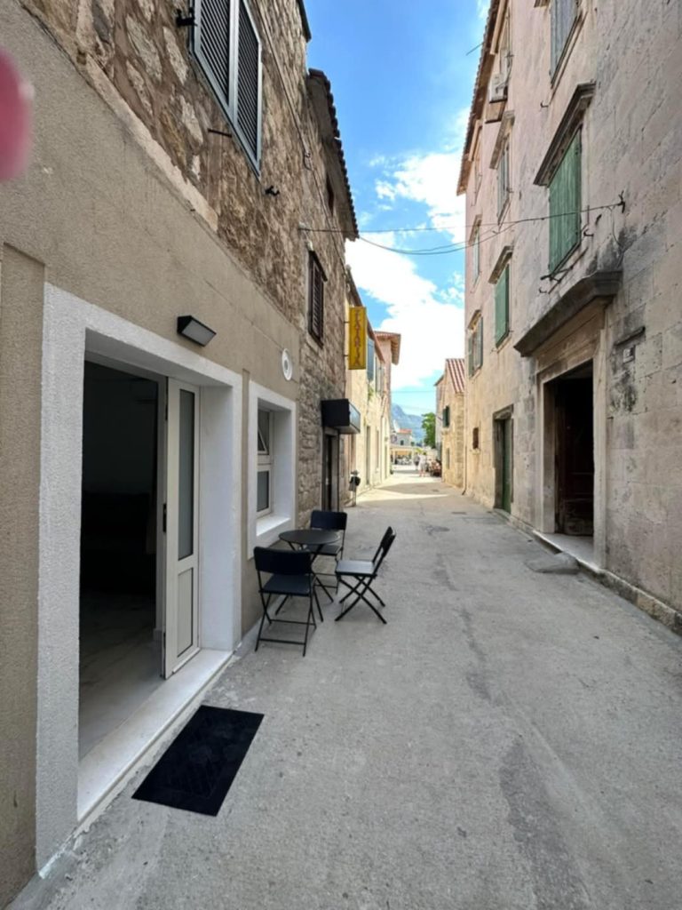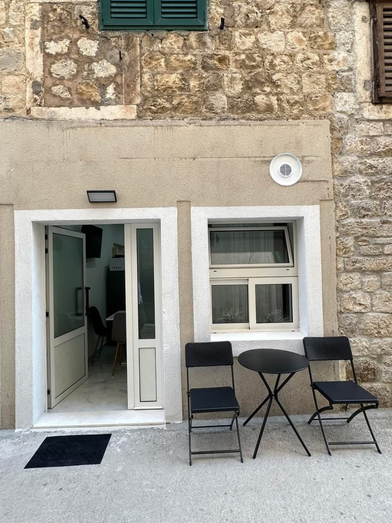 Apartmaji 2+2 se nahajajo v samem središču Kaštel Starega, v pritličju očarljive kamnite hiše, le 15 metrov od glavne plaže Đardin. Na začetku te plaže je manjši del, namenjen kopanju s psi, večji pasji plaži pa se nahajata v Kaštel Lukšiću in Kaštel Štafiliću, le štiri minute vožnje stran.
