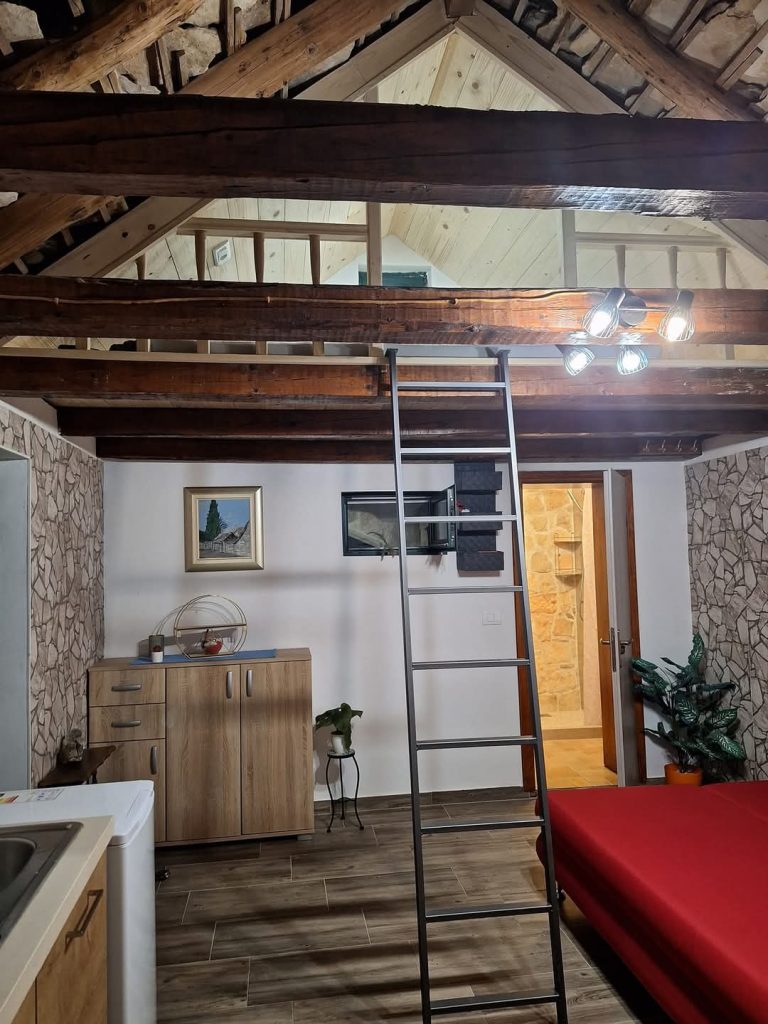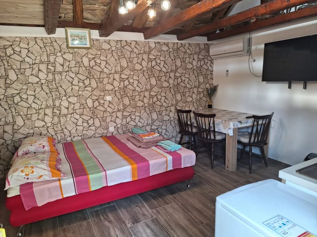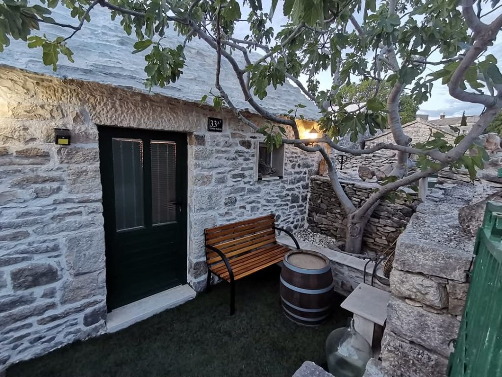 Popolnoma opremljena avtohtona dalmatinska hišica se nahaja v miru in tišini najstarejšega naselja, bisera kulturne in zgodovinske dediščine otoka Brača – v Škripu! V spodnjemu delu hiše se nahaja kuhinja z dnevno sobo in kopalnico, zgoraj pa je galerija, kjer je postelja. Primerna je za dve osebi.