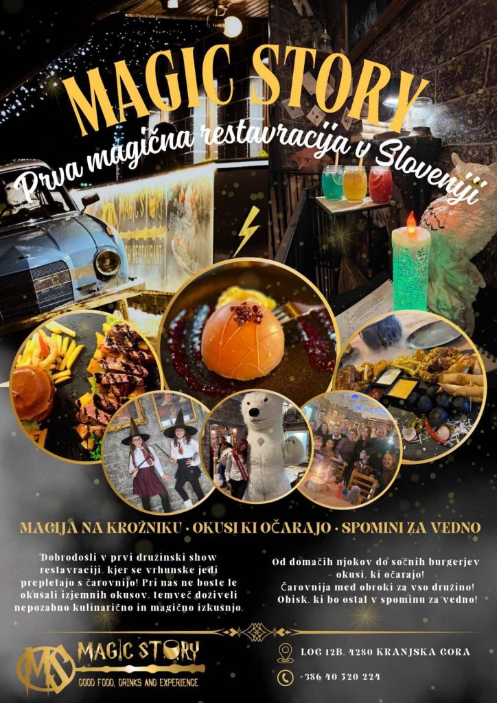 Magic Story v Kranjski Gori ponuja pestro izbiro za vsakogar. Na njihovem meniju lahko obiskovalci najdejo različne prigrizke, predjedi, glavne jedi ter sladice, ki zadovoljijo tudi vegetarijance in vegane.