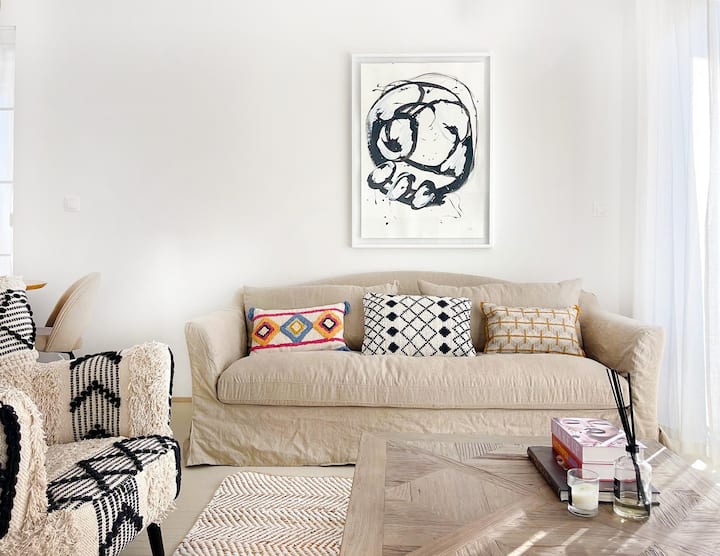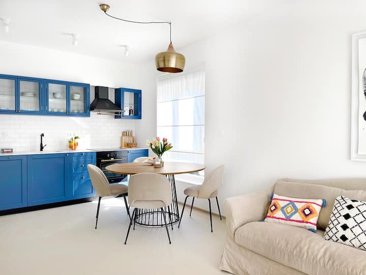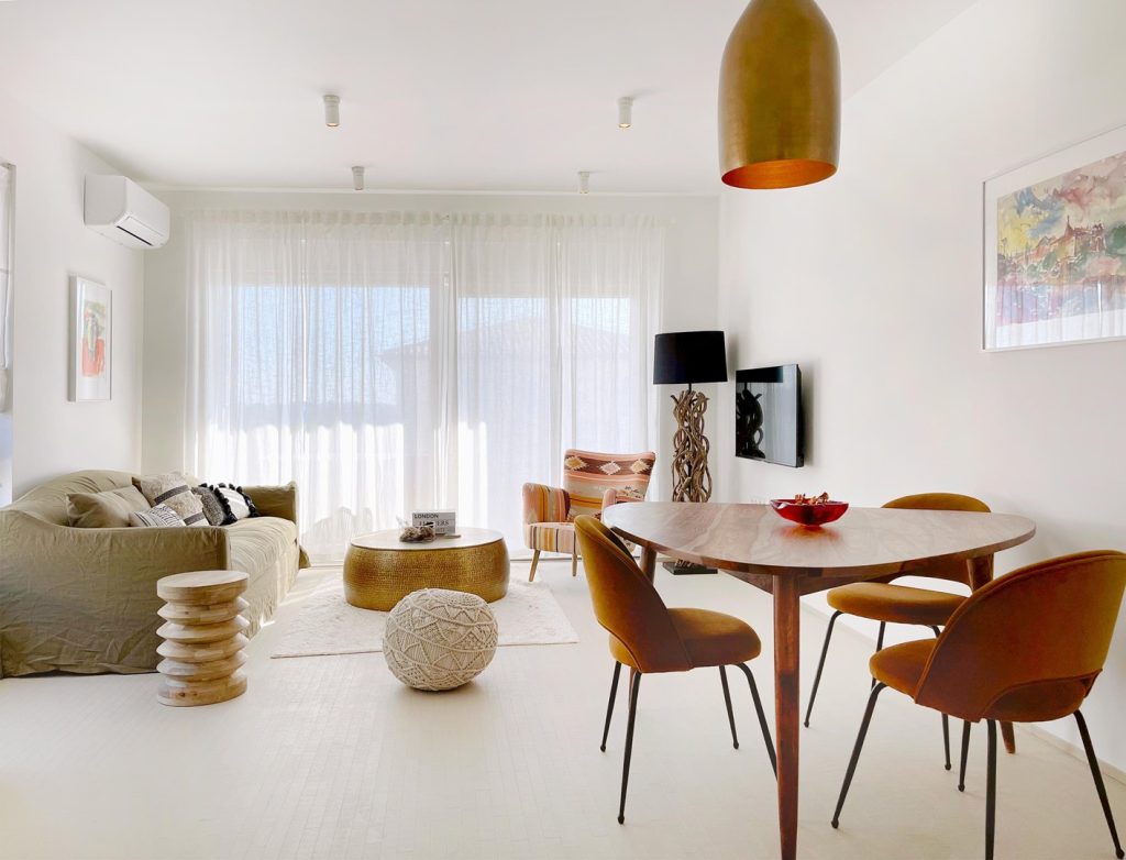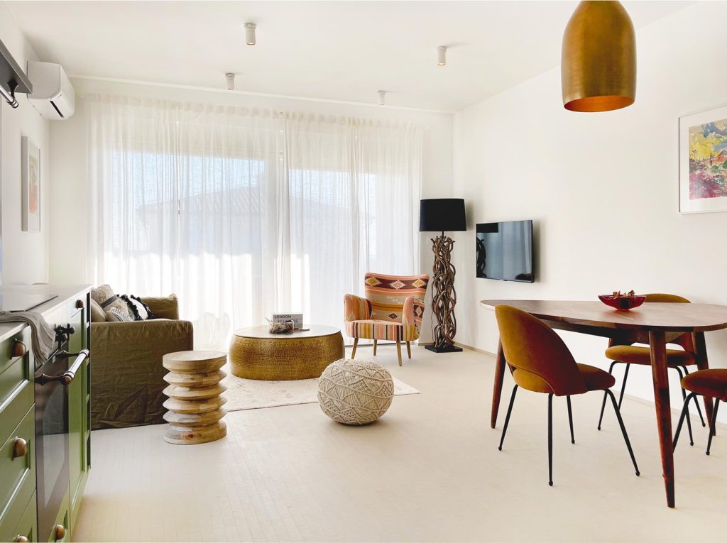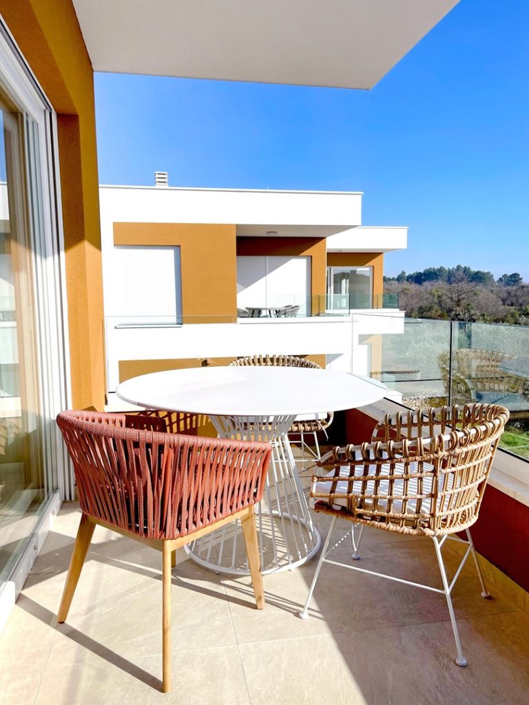 Tudi ta apartma je velikosti 45 m² in primeren za dve osebi. Ima svetlo in udobno dnevno sobo s teraso, ki jo razsvetljuje jutranje sonce. Če uživate v prvem jutranjem požirku kave v toplih sončnih žarkih, s pogledom na morje in oljčne nasade, je to pravo mesto za vas in vašega psa. Spalnica apartmaja je ločena, vendar dobro povezana s preostalim delom apartmaja. Kuhinja v apartmaju je popolnoma opremljena za udobno pripravo obrokov. Vključuje čistilna sredstva, opekač kruha, pečico, kuhinjsko posodo, grelnik vode, pomivalni stroj in hladilnik.