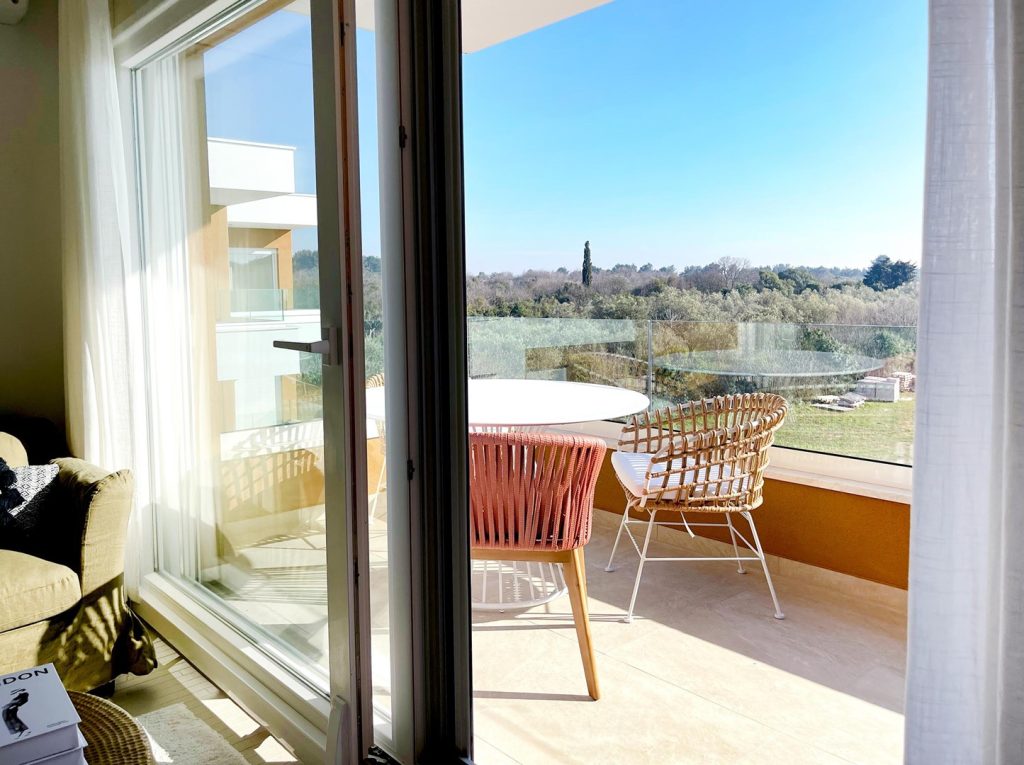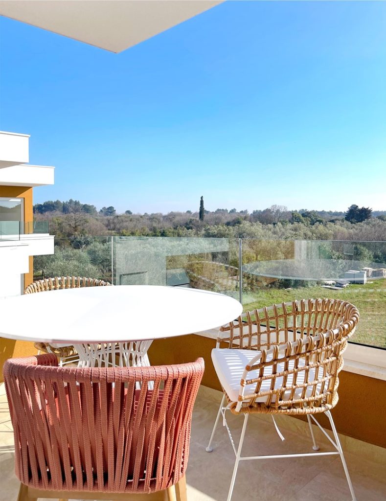 Prostoren apartma velikosti 45 m² je idealen za dve osebi. Nahaja se v mirnem naselju Peroj in vas bo navdušil z osupljivim razgledom na morje in bližnje Brione. Apartma obsega svetlo spalnico, udobno dnevno sobo ter sodobno kuhinjo, ki omogoča pripravo obrokov po vašem okusu. Kuhinja je v celoti opremljena – na voljo so hladilnik, pečica, pomivalni stroj, kuhinjski pripomočki in pralni stroj. Kopalnica je opremljena z moderno prho in sušilcem za lase, gostom pa so na voljo sveže brisače in posteljnina. Zasebni balkon je popoln kotiček za sprostitev – tudi v družbi vašega kužka.