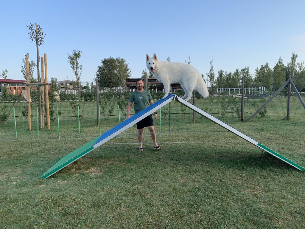 Tudi mi smo se danes vrnili iz Barricate. Res je raj za kužke. Mobilna hiška in ograjena terasa v senci. Agility park, kjer se lahko urijo v veščinah ali pa samo igrajo z drugimi kužki, bazenček za pse. Bil je tudi zelo prijazen dog trainer, nam je pomerkal Dakoto, ko smo šli za en dan z otrokoma v Mirabilandijo. Ni zaračunal, saj naj bi to bil njegov “job” ampak sva mu vseeno dala nekaj denarja, ker je res lepo poskrbel zanjo, pošiljal nama je slike in posnetke. Zdi se mi taka idealna lokacije za družine z otroki, ki imajo kuža.