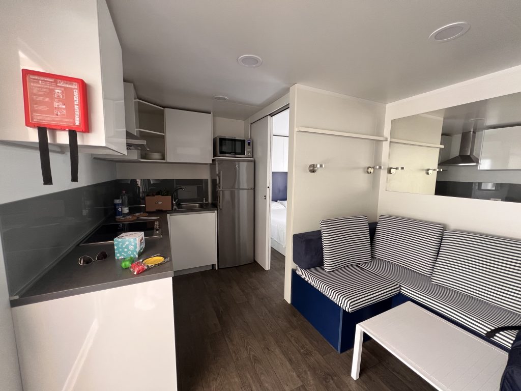Izbiraš lahko med mobilnimi hiškami, ki se razlikujejo po velikosti in ceni. Mi smo dopustovali v veliki, da smo imeli več prostora.