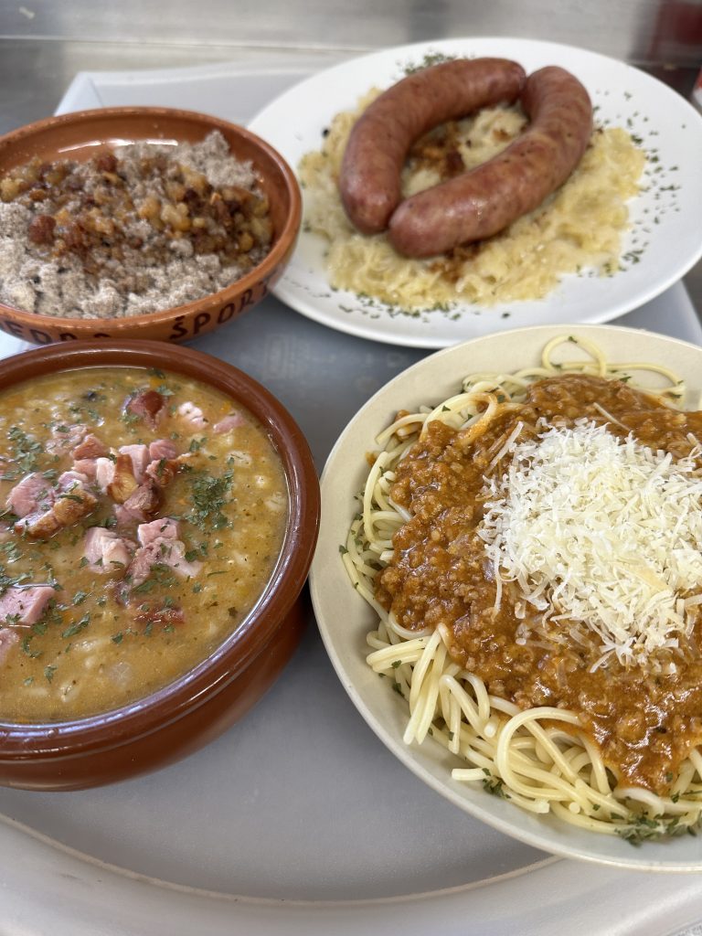 Ponujajo tradicionalne slovenske jedi kot so ričet, jota, pasulj, žganci, pečenice in klobase, med vikendi pa je izbira še bogatejša. Za sladkosnede priporočamo Jakobovo pito ali domače sirove štruklje – in če imate srečo, tudi potico ali zavitek.