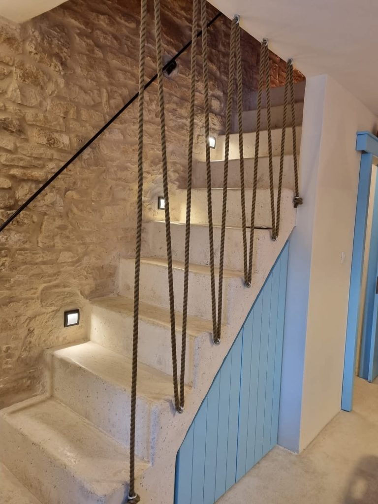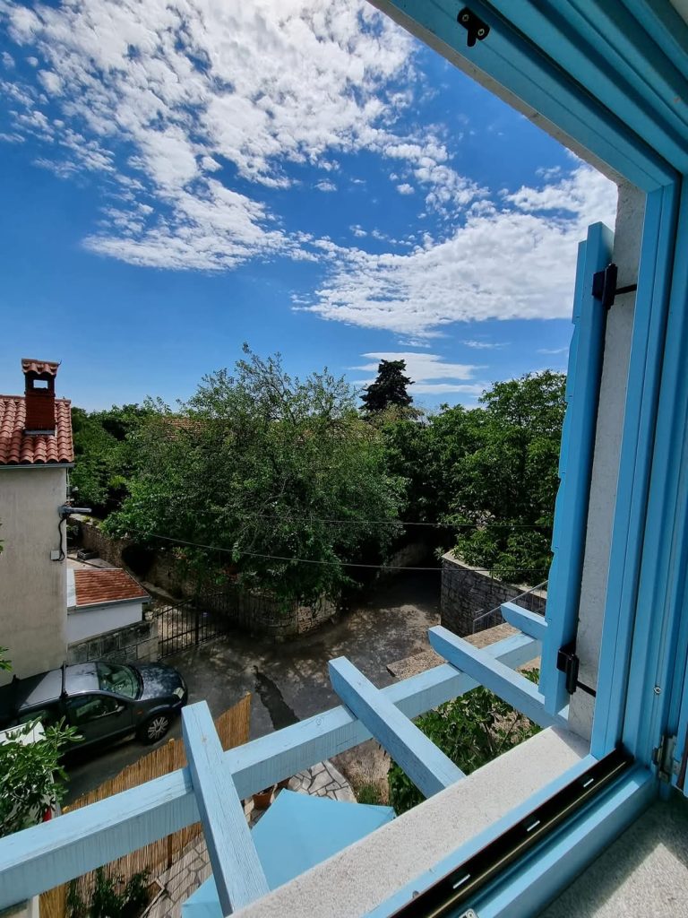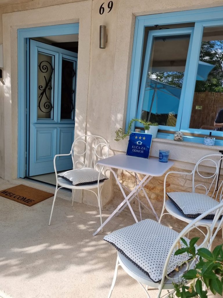 Hiša je za dve osebi, sprejme pa maksimalno 4 osebe in enega dodatnega otroka. V pritličju je kuhinja z jedilnico, opremljena s pomivalnim in pralnim strojem, ter manjša kopalnica. V nadstropju vas pričaka prijeten dnevni prostor z dvema raztegljivima kavčema, TV-jem, WiFi-jem, delovno mizo in izhodom na prostoren balkon – popoln kotiček za sproščanje ob sončnem zahodu. V zgornjem nadstropju pa se nahaja spalnica z veliko zakonsko posteljo in lastno kopalnico.