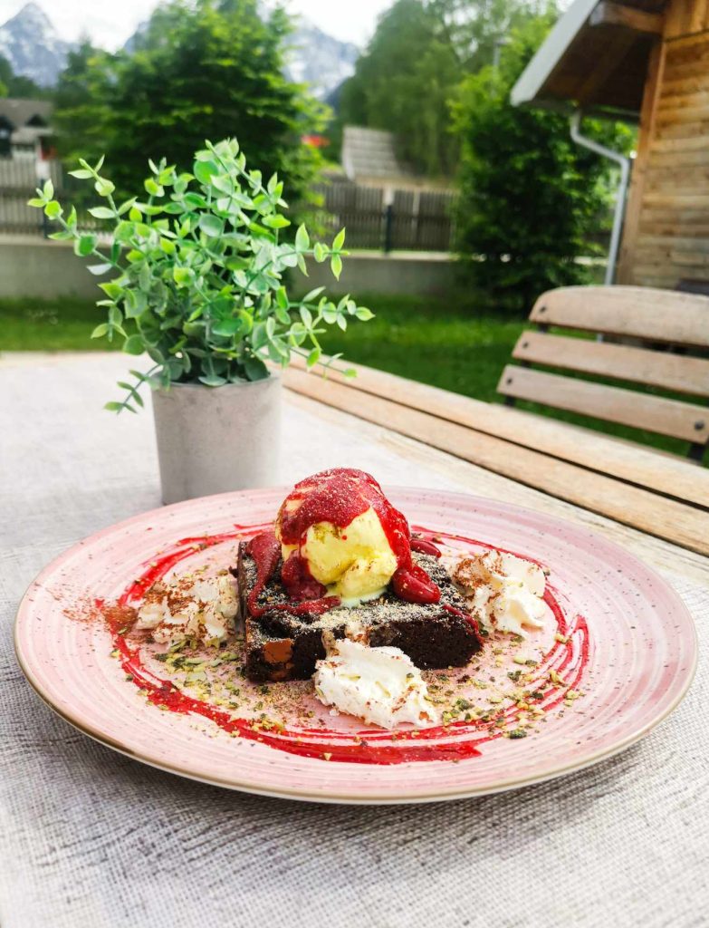Njihov vrt ponuja osupljiv pogled na Julijske Alpe – prava paša za oči in dušo. Kosilo ali večerja pri njih je zato več kot le obrok – je doživetje.