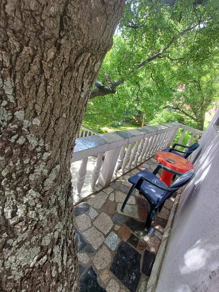 Oba apartmaja imata lastno teraso in dvorišče. Manjši apartma ima skoraj popolnoma ograjeno teraso, medtem ko ima večji več prostora in delno ograjeno teraso. Okoli hiše so velika drevesa, ki dajejo prijetno senco – idealno za poletno sprostitev.