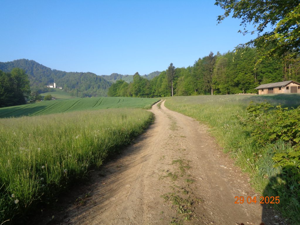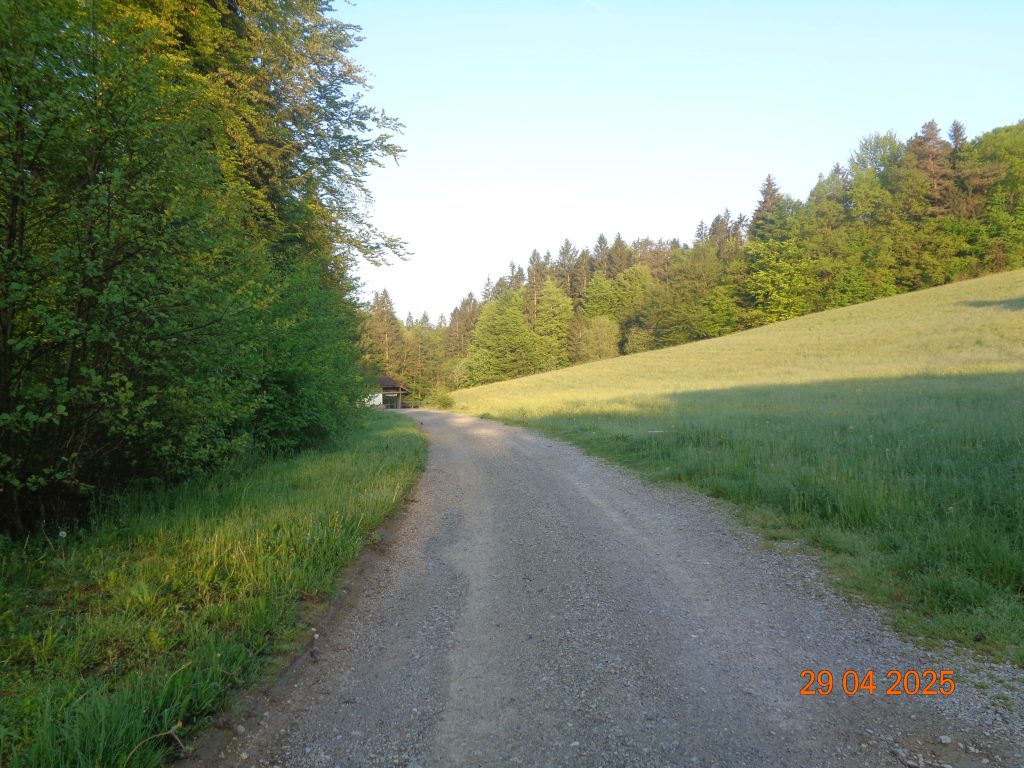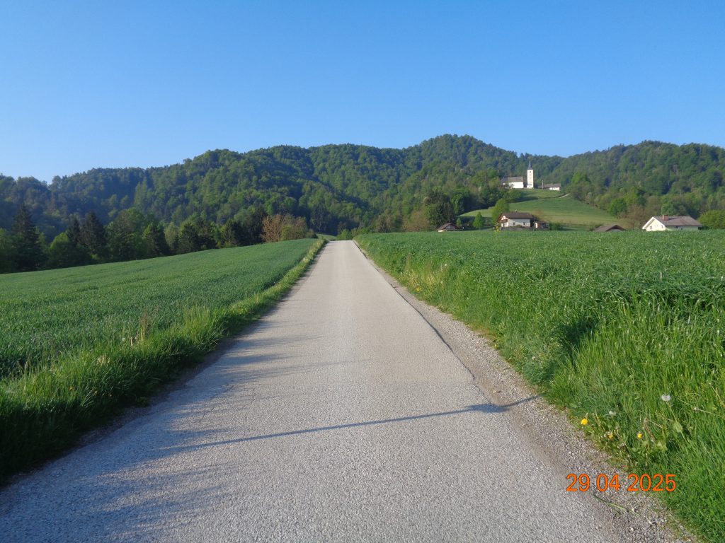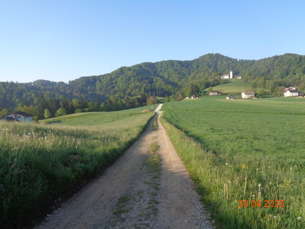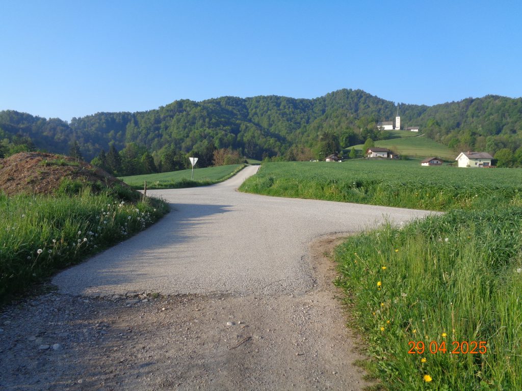Od cerkve smo nadaljevale levo po razmeroma širokem kolovozu.