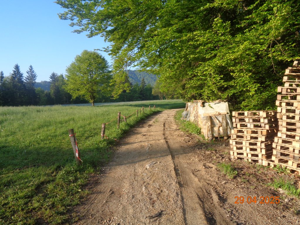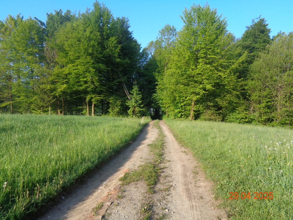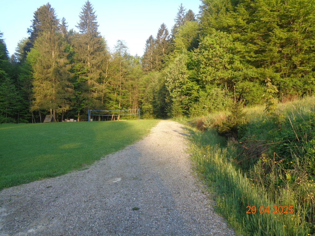 Z omenjenega razpotja, ki se nahaja ob robu gozda, smo nadaljevale ostro levo na makadamsko cesto.