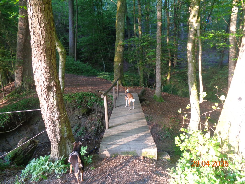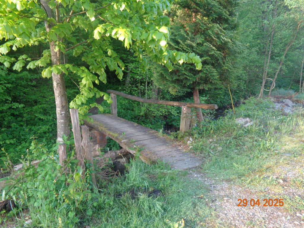 Stiskalnico smo obšle po levi strani in nadaljevale za njo preko mostička v gozd.