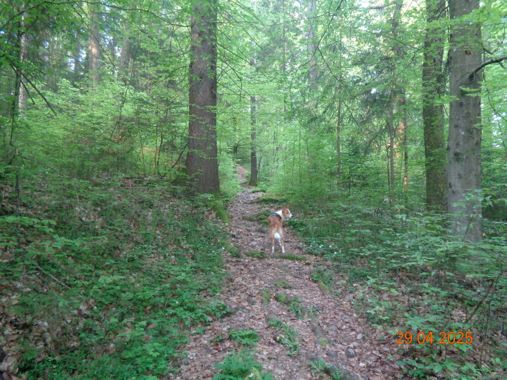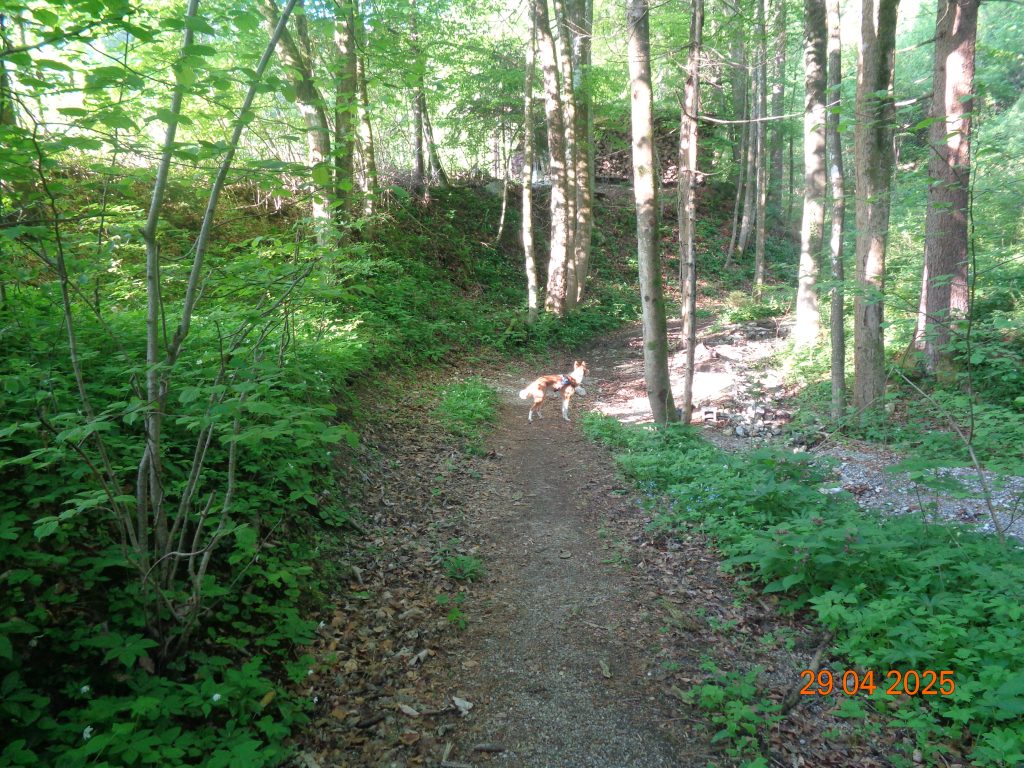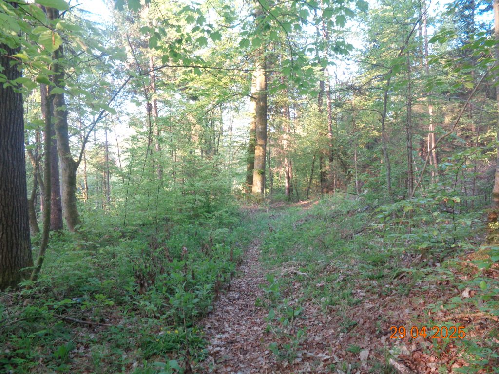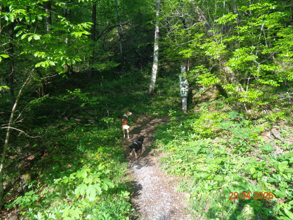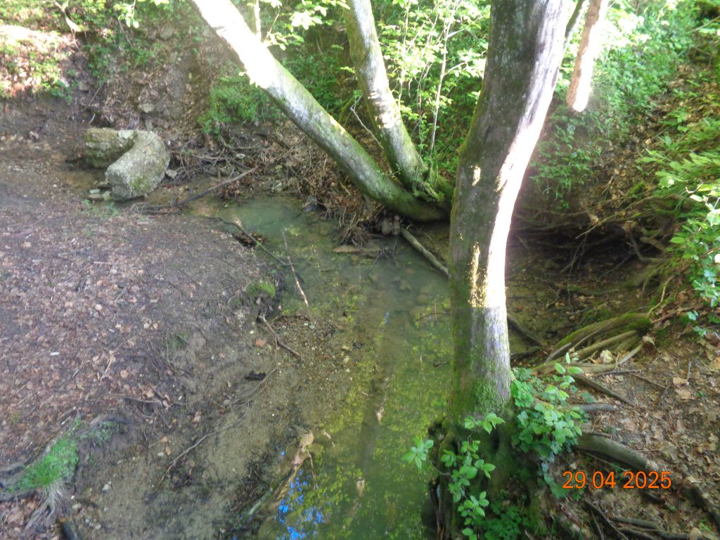 Po nekaj 10 korakih smo zapustile omenjeni kolovoz in nadaljevale desno v gozd, kjer smo se najprej spustile do potočka in ga tudi prečile.
